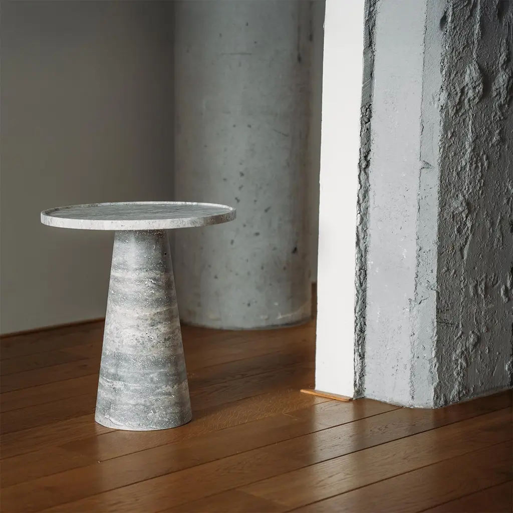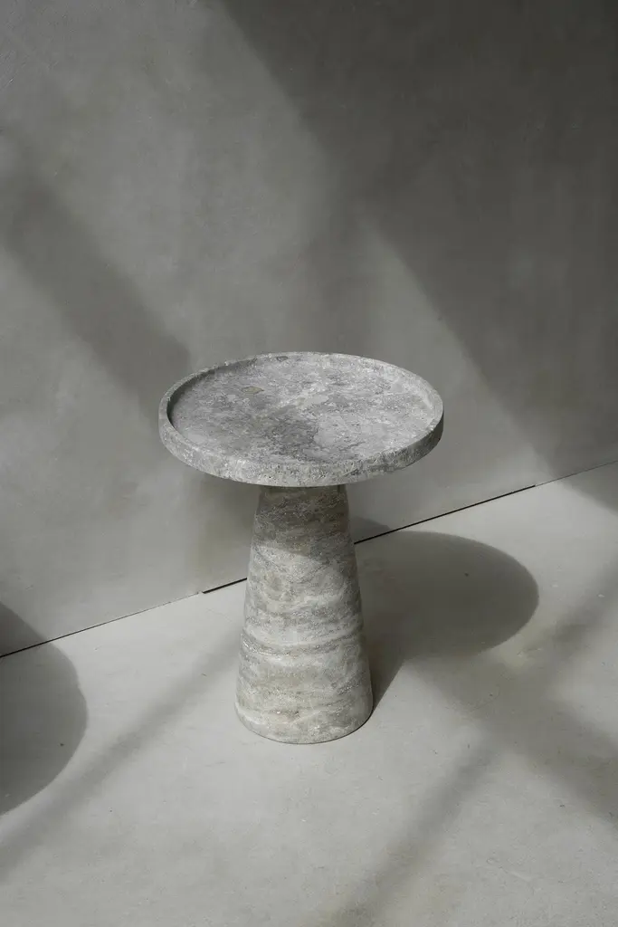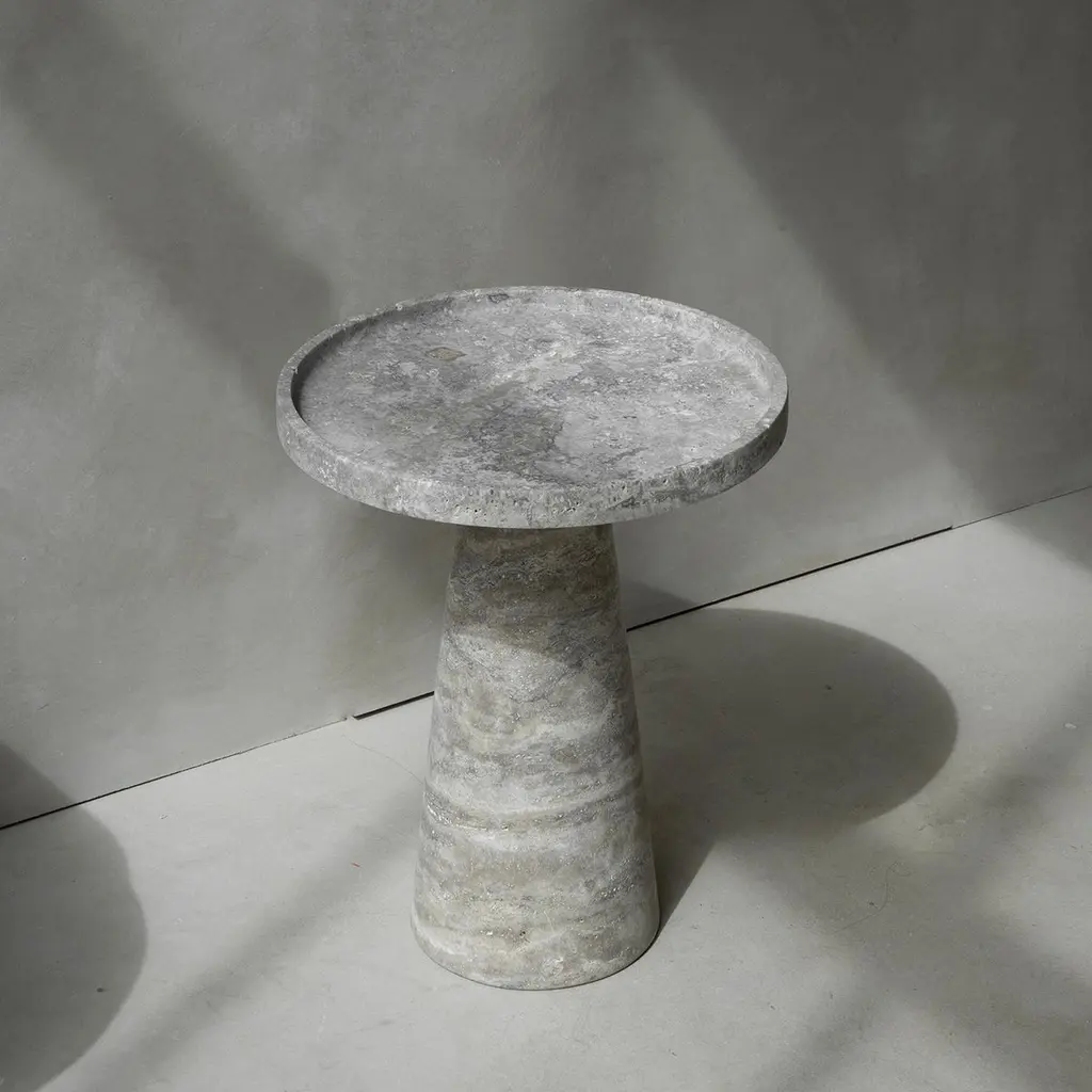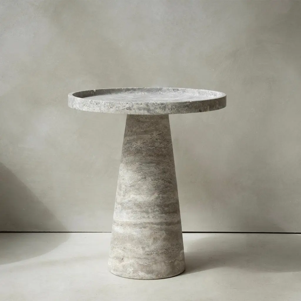 Add a touch of elegance to any room with this stunning Silver Travertine Side Table. The conical shape of this side table works with a variety of interior aesthetics from traditional to contemporary. Perfect for placing next to a sofa, chair or bed, this functional accent table gives you a surface for lamps, books, remote controls or your morning coffee.Crafted of durable stone.Features a conical shape that fits into any décor.Smooth, polished surface that's easy to clean.