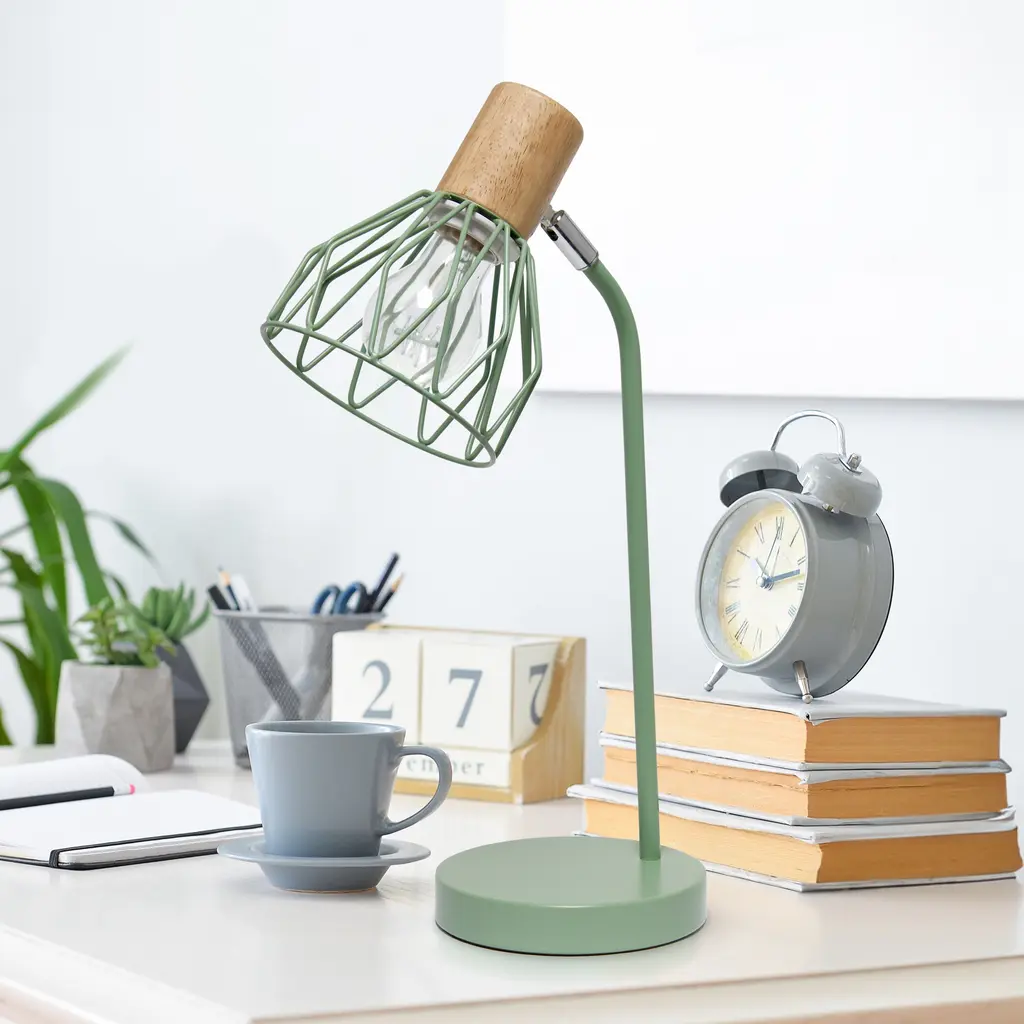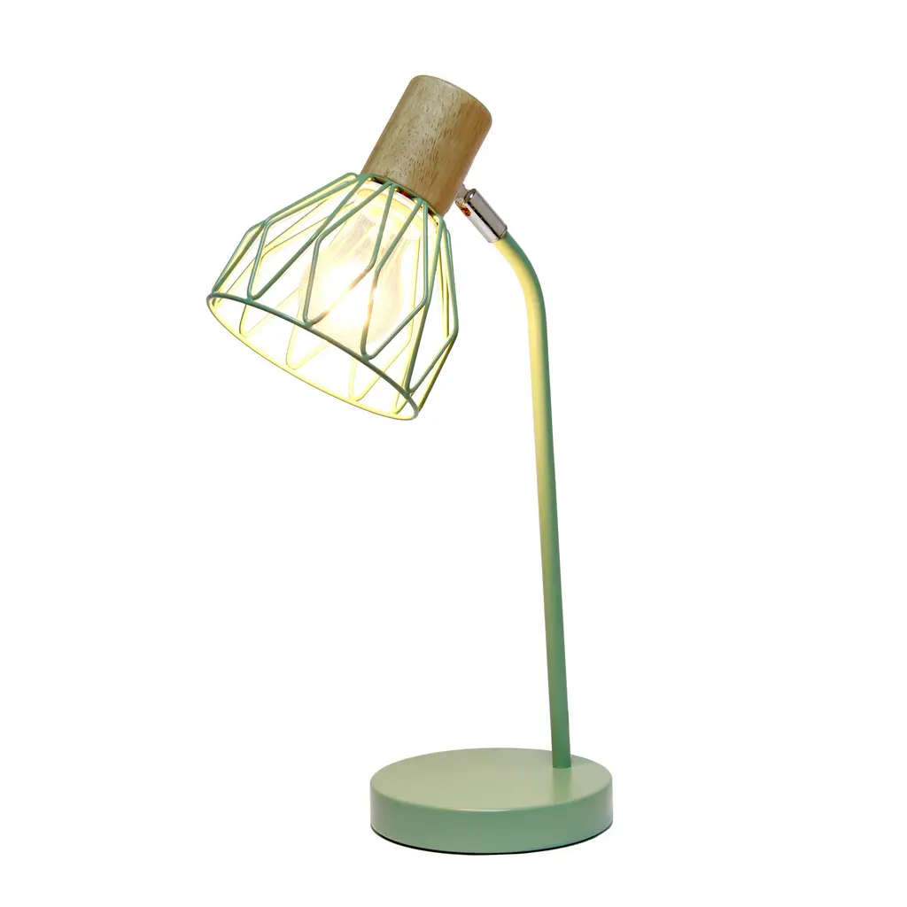 Simple Designs 18.19" Industrial Farmhouse Fusion Adjustable Cage Wire Office Accent Desk Lamp - Green