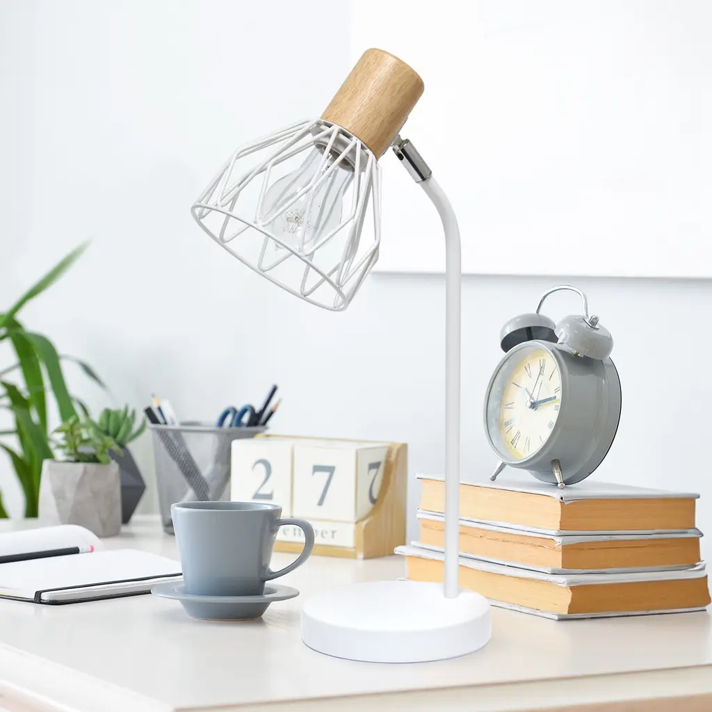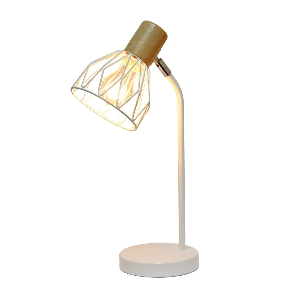 Simple Designs 18.19" Industrial Farmhouse Fusion Adjustable Cage Wire Office Accent Desk Lamp - White