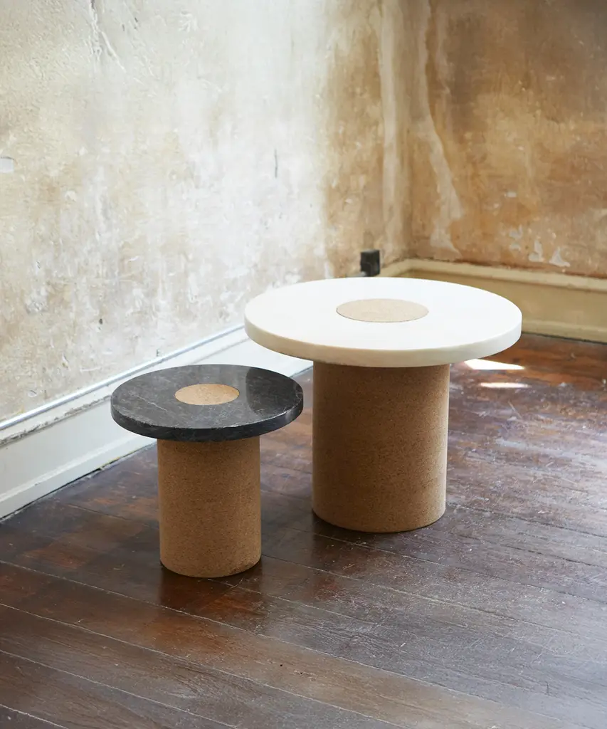 Suitable as a coffee table or side table, the Sintra Table features a smooth marble top with a contrasting rounded cork base. The polished surface of the marble showcases the intricate veins and natural beauty of the stone, while the cork base presents unique lightweight and durable propertiesa sculptural furniture piece with expressive attributes and functionality. Designed by Nicholai Wiig-Hansen for Frama - an interior and product design studio based in Copenhagen. The studio is a dynamic testing ground for new designs and projects, embodying their classical, yet boundary-pushing approach.