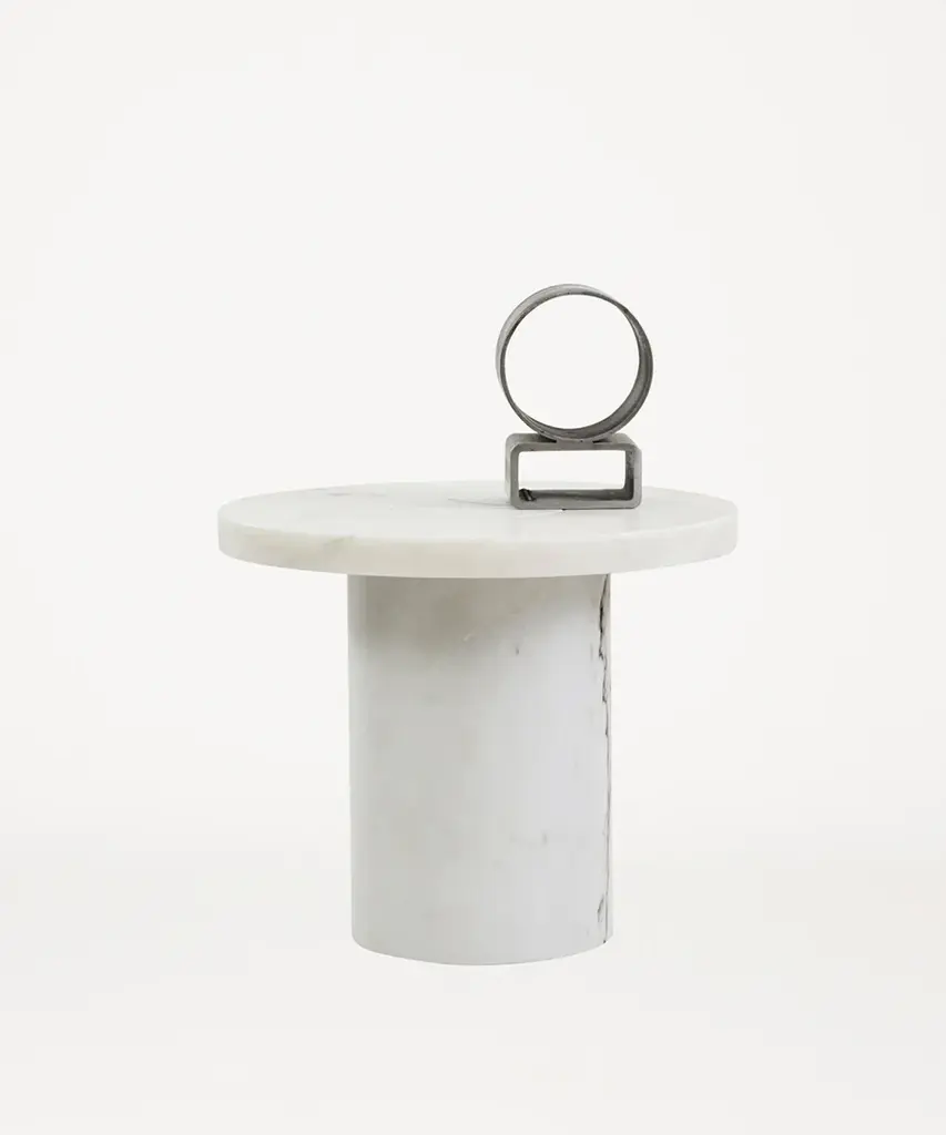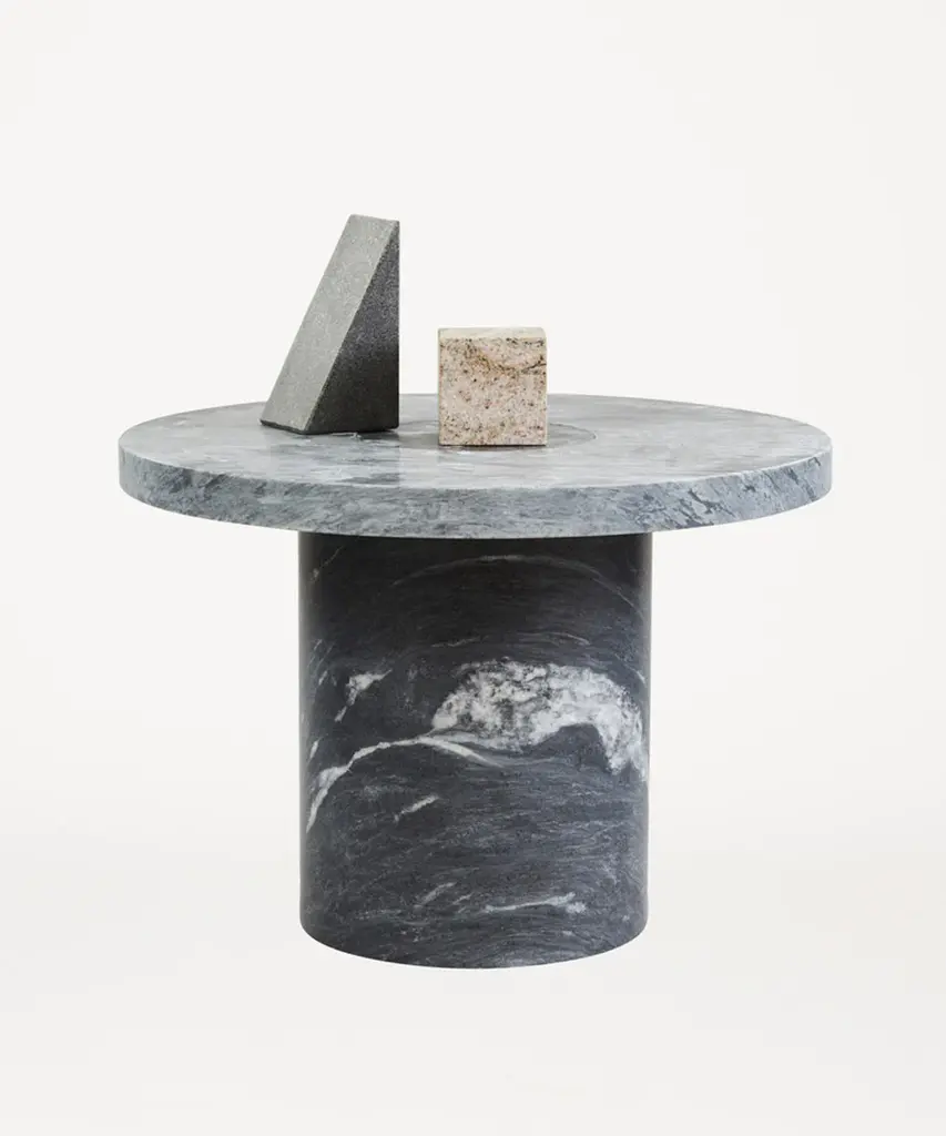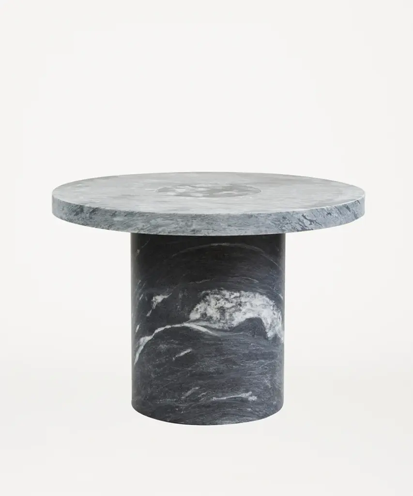 Suitable as a coffee table or side table, the Sintra Table features a smooth marble top with a contrasting rounded cork base. The polished surface of the marble showcases the intricate veins and natural beauty of the stone, while the cork base presents unique lightweight and durable propertiesa sculptural furniture piece with expressive attributes and functionality. Designed by Nicholai Wiig-Hansen for Frama - an interior and product design studio based in Copenhagen. The studio is a dynamic testing ground for new designs and projects, embodying their classical, yet boundary-pushing approach.