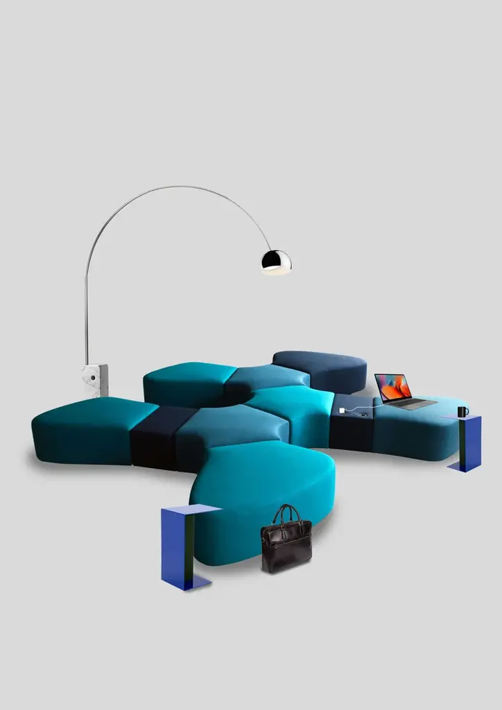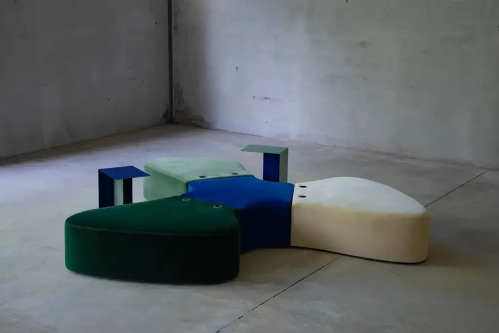 Sir-pent is a rectangular side table.In the picture:SHEET METAL RAL 5002 GLOSSY BLUEFABRIC cotton velvet G075 COL. 234 GREENOther colors on request.SIR-PENT stretches and shrinks, winds and branches out: nothing is an obstacle for SIRPENT, a large modular seating system that starts from a basic set of seven modules plus an all-rounder element that facilitates the flow of any combination, be it linear or articulated into soft islands. SIR-PENT can also turn into a fun stimulating game, and it’s perfect wherever flexibility is a key.