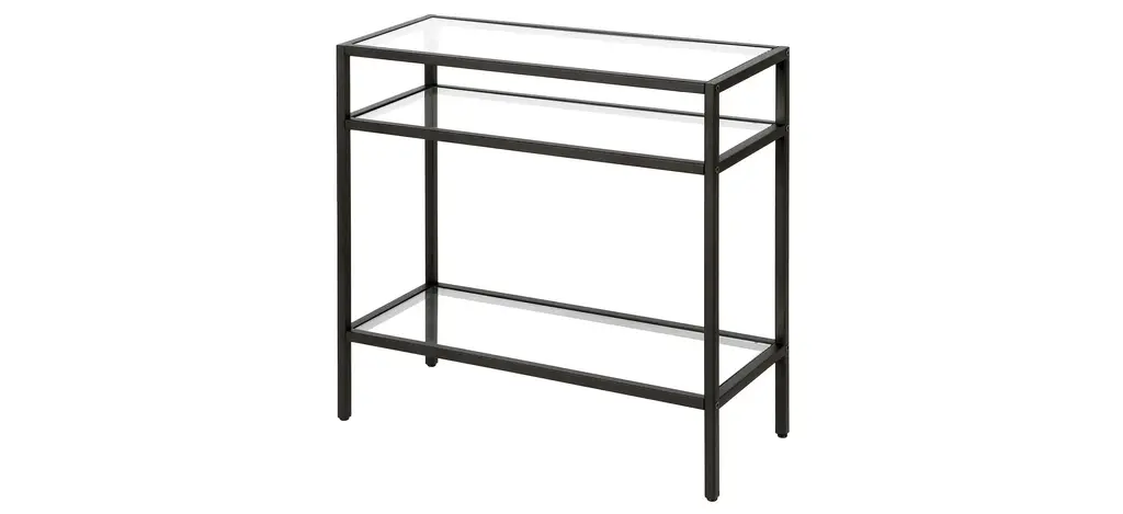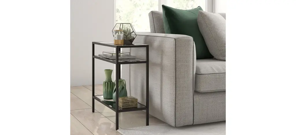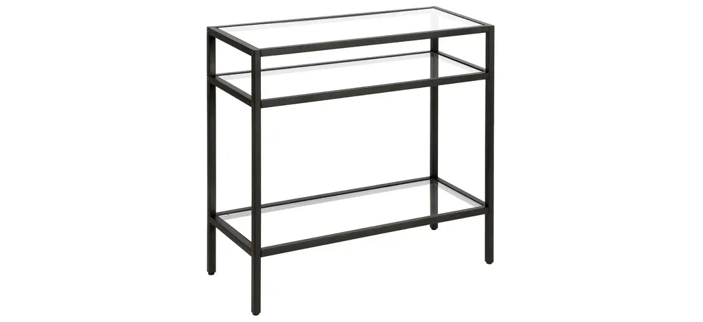 This industrial display box styled Sivil side table features a seamless blend of function and design. Easy to style, the tempered glass top, metal shelf and blackened bronze finish make it the perfect addition to your living room or den ensemble.