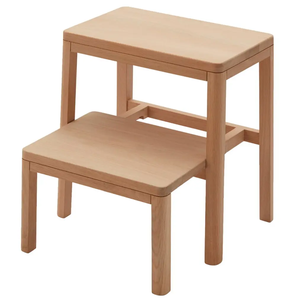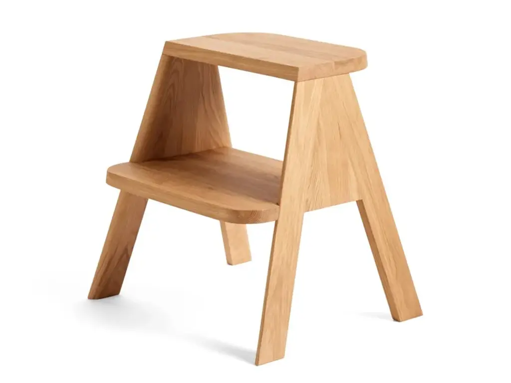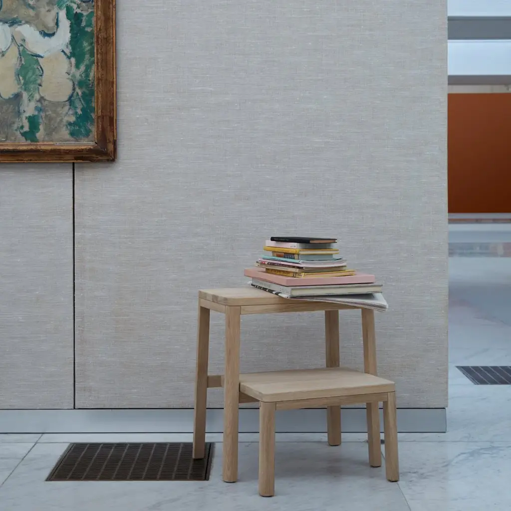 Noboru means 'to climb' in Japanese and is a multifunctional step ladder. The lower step can slide in, taking up less space and turning the step ladder into a stool or side table. Under the step a short handle is milled, so you can grab it and pull it out and push it back in. The minimalistic step ladder in solid oak has slim profiles on all edges allowing the assemblings to be visible, which gives Noboru its aesthetic excess in the overall elegant and discrete expression.