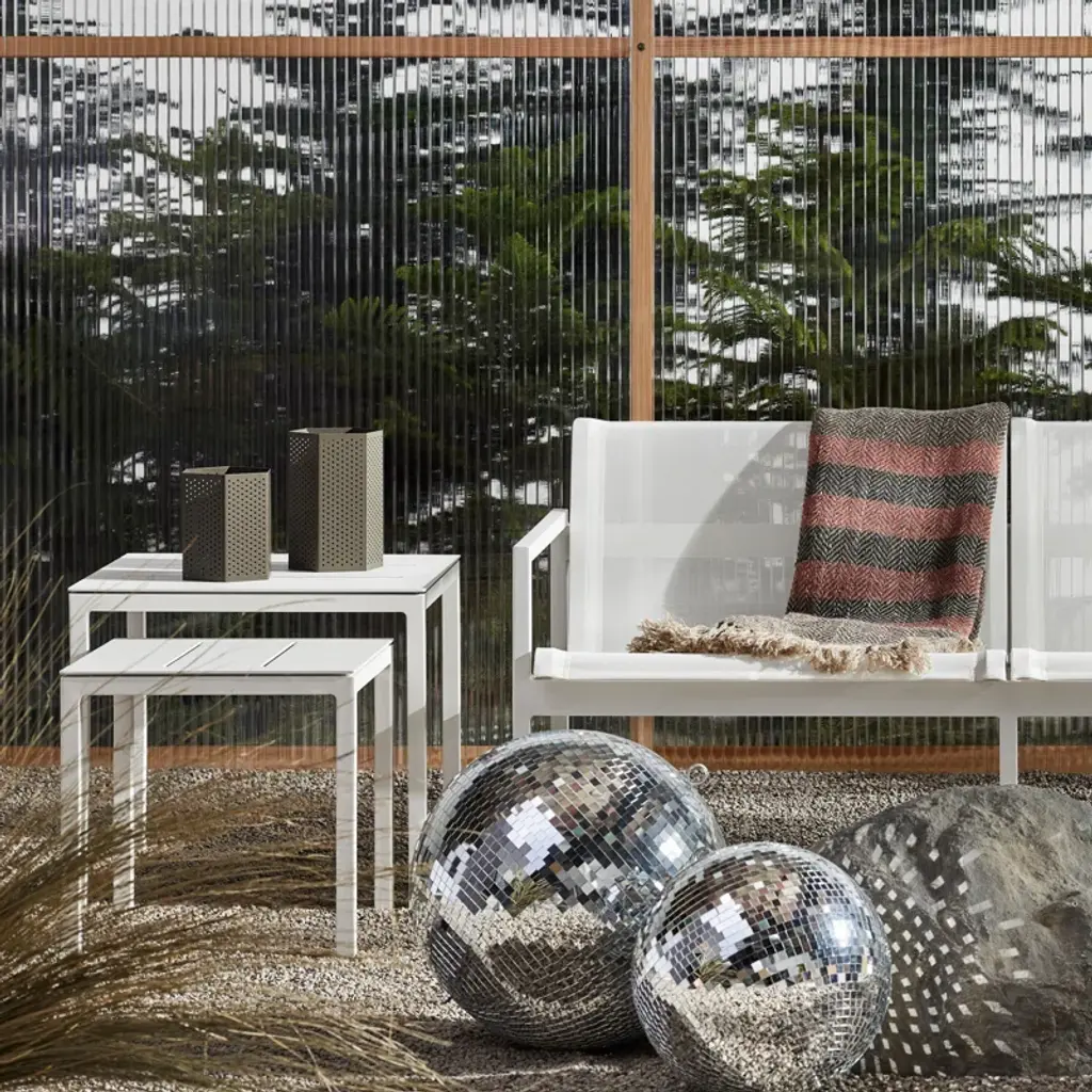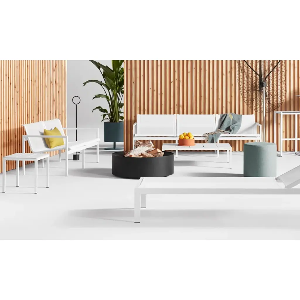 Crisp minimal powder-coated aluminum. Clean lines are designed to weather the elements.