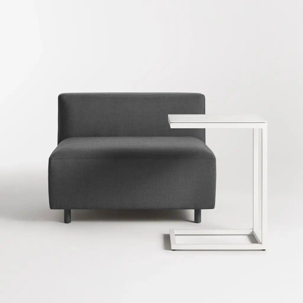 Likes Piña Coladas and getting caught in the rain. Make your cocktail, sunglasses and steamy beach read come to you. Crisp, cantilevered top lets you keep warm weather accouterments close at hand. Minimal powder-coated aluminum adds class to the whole laidback situation. Perfect for those who have zero plans to get up anytime in the near future. Features