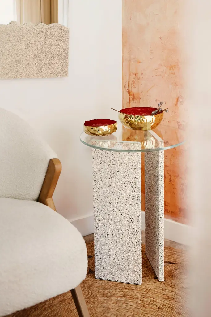 Jordan Keaney Studio is focused on bringing COLOUR and TEXTURE to your space. This side table is handcrafted by Jordan Keaney using a combination of modern digital and sculpting techniques, combined with classic casting and finishing, on top of which Jordan adds his own flare of self made methods of manufacture.The textured legs of the SLAB side table, which can also be done in a console table or a coffee table form, make the piece exciting to interact with when your eyes are closed as well as open.Available in a range of colours, the SLAB side table features an elegant piece of glass floating atop.for customisable colours and sizes please do not hesitate to get in touch.