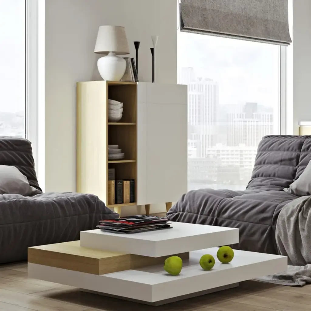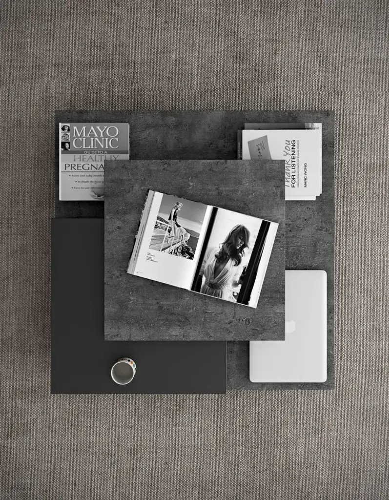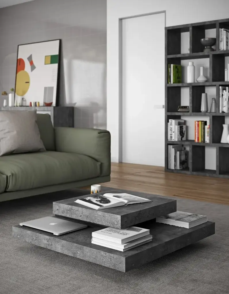 An impressive piece, Slate presents a proud figure in any occasion. The many levels of this original coffee table are a smart solution to organize the objects on the top, while adding a certain movement to its shape.