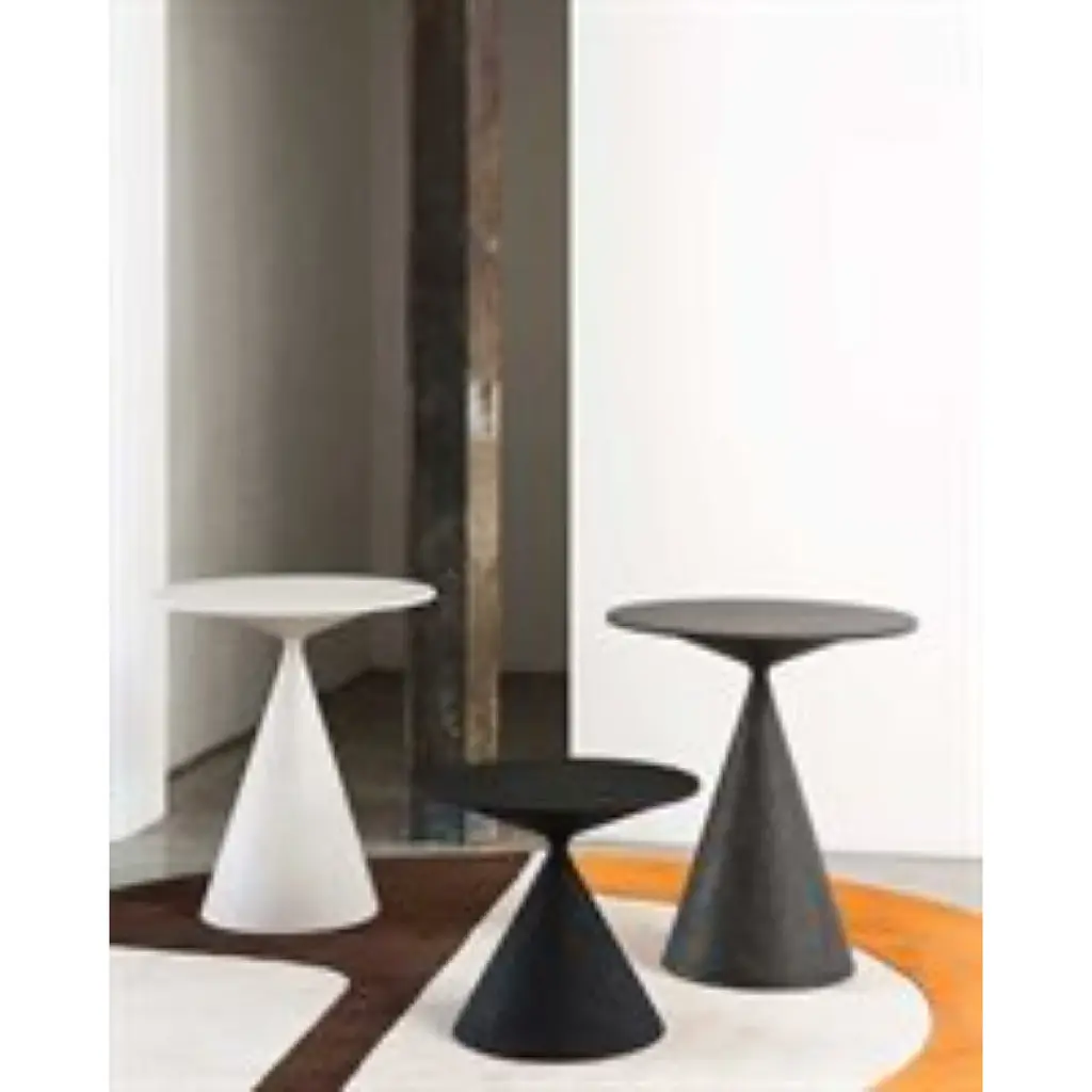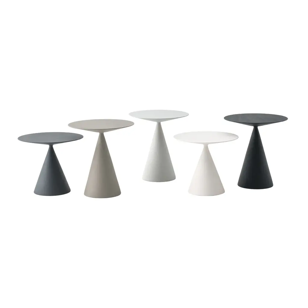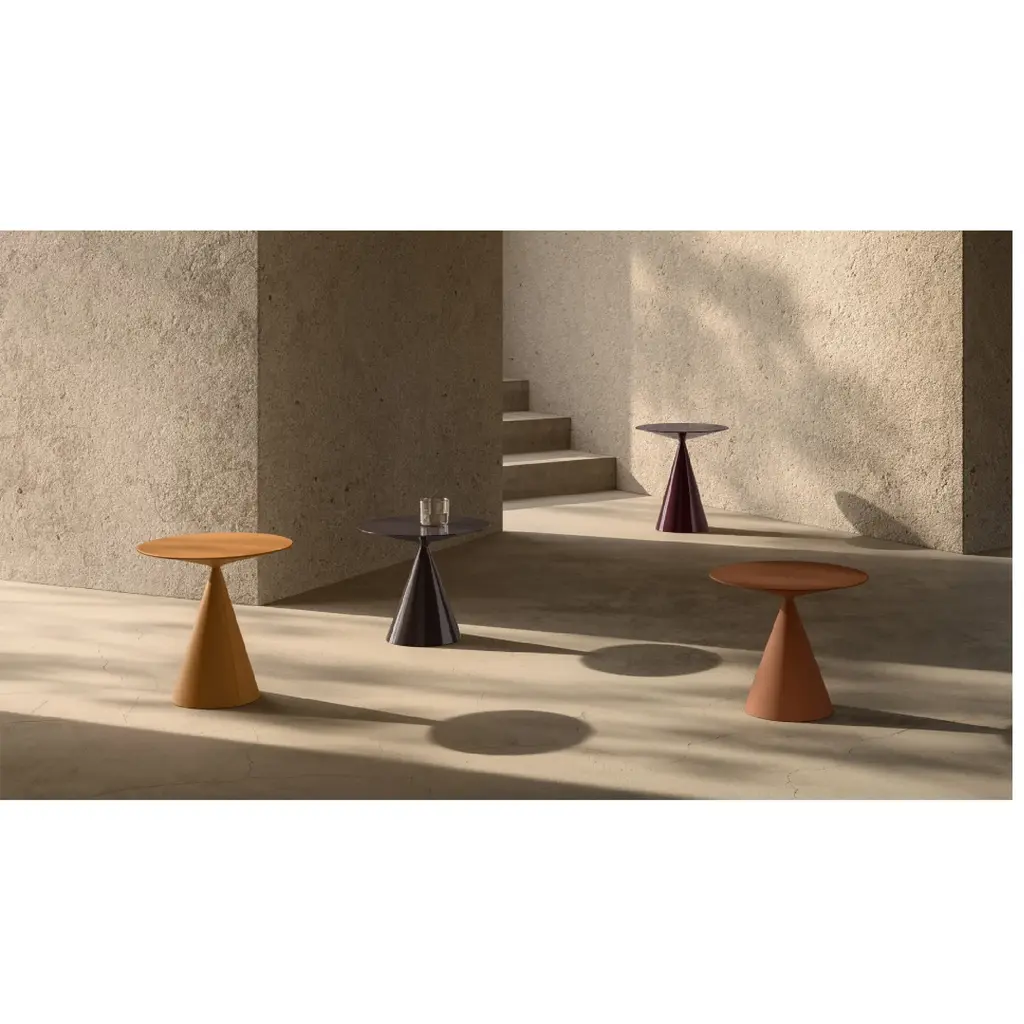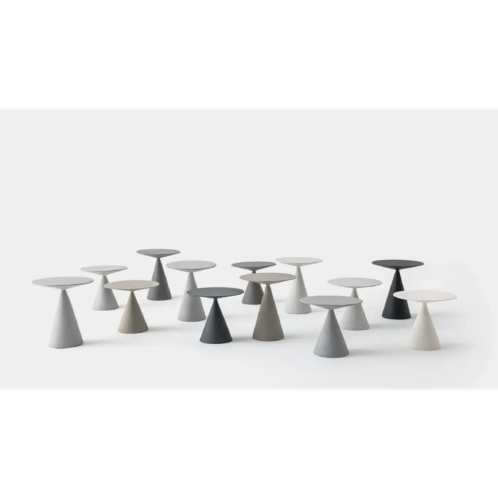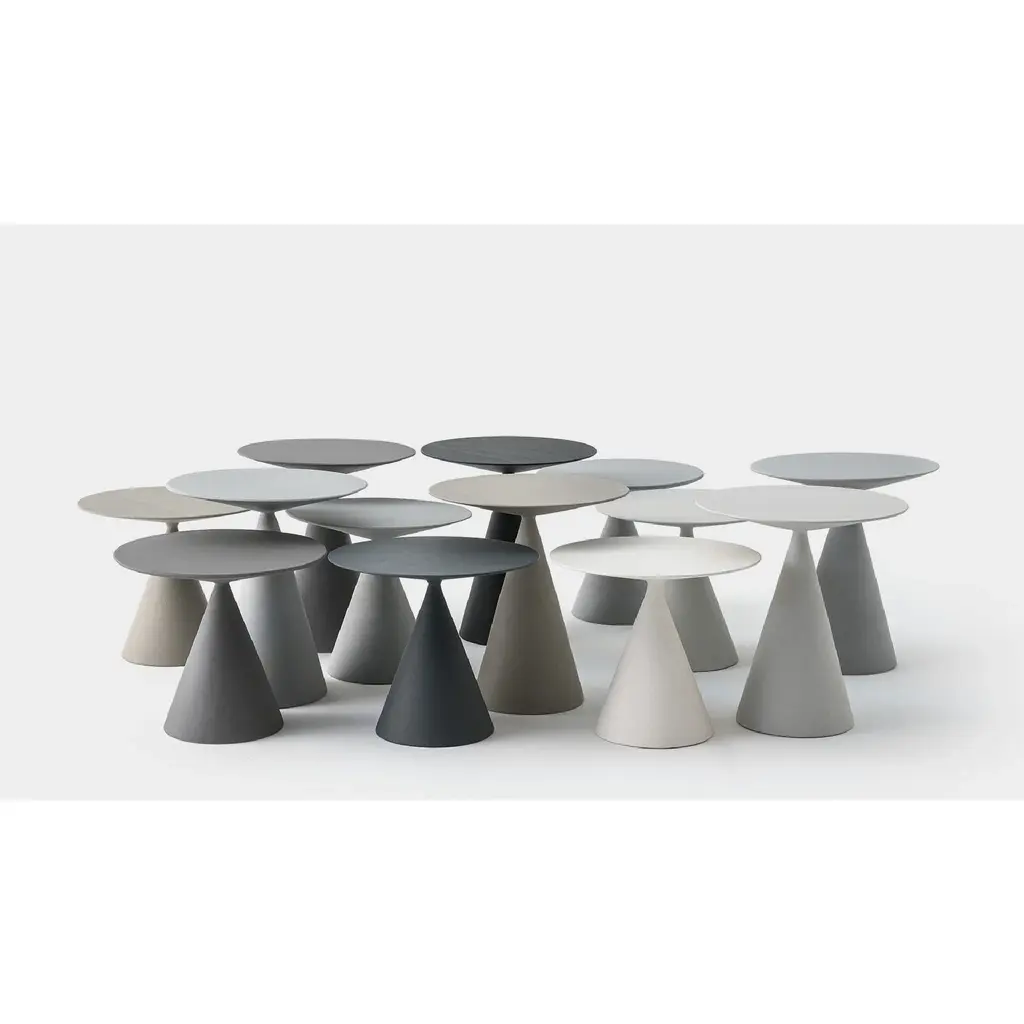 Introducing the Sleek Round Side Table from Desalto's Micro Clay collection. This playful and versatile piece adds a touch of whimsy to any environment while maintaining a timeless elegance. The 2024 version features a leather and cuoietto coating, creating a sophisticated and unique texture. Elevate your space with this artisanal luxury piece.