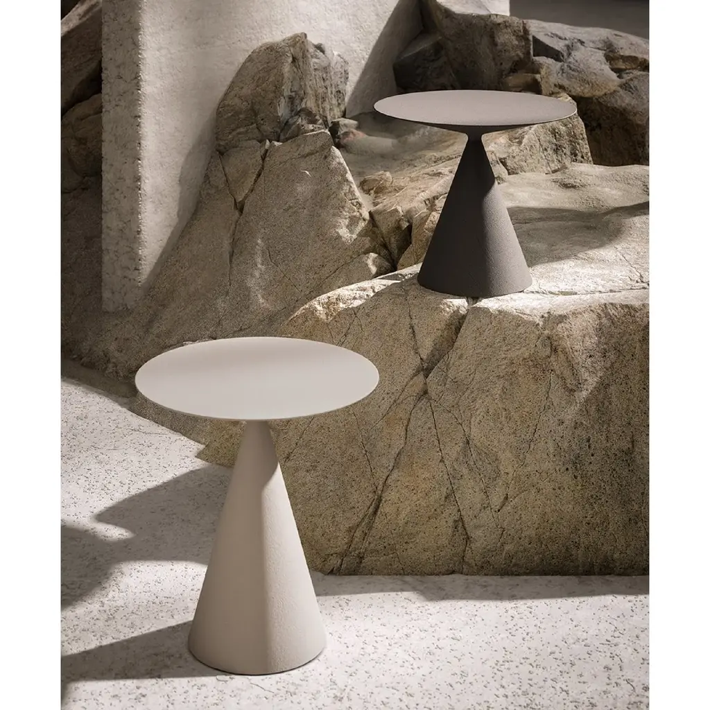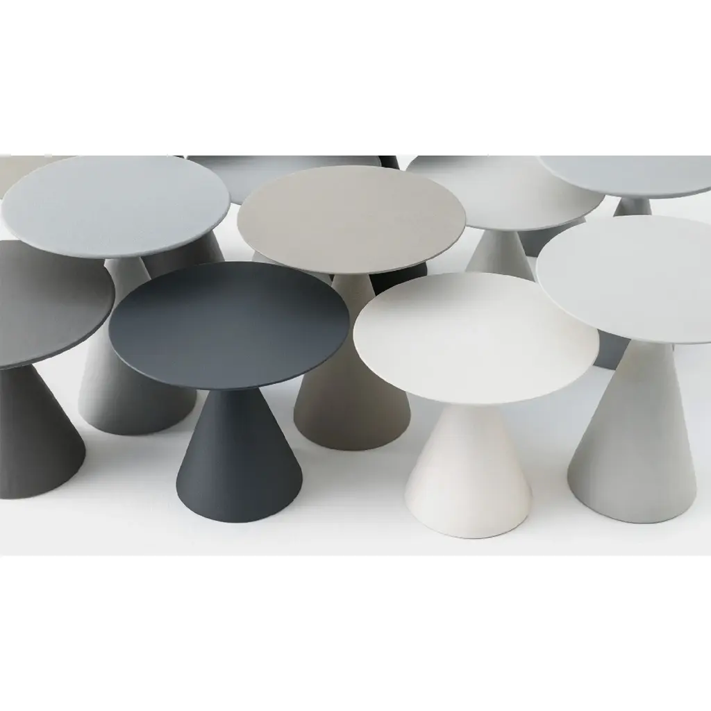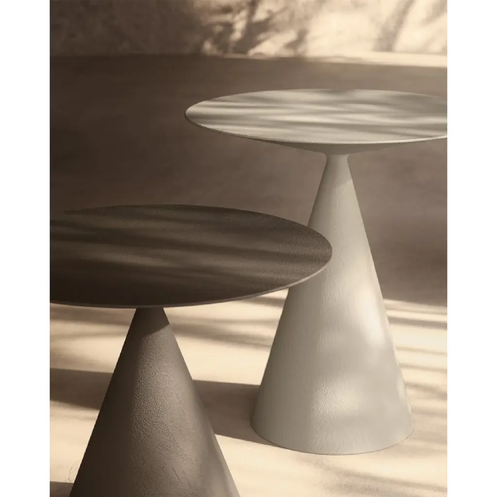 Introducing the Sleek Round Side Table from Desalto's Micro Clay collection. This playful and versatile piece adds a touch of whimsy to any environment while maintaining a timeless elegance. The 2024 version features a leather and cuoietto coating, creating a sophisticated and unique texture. Elevate your space with this artisanal luxury piece.