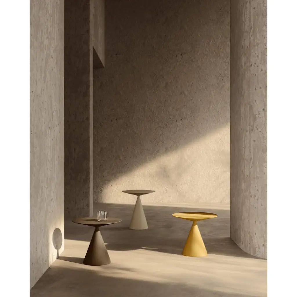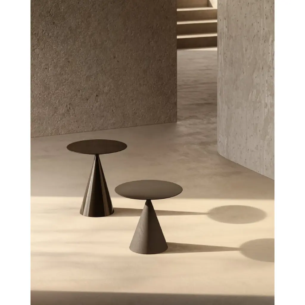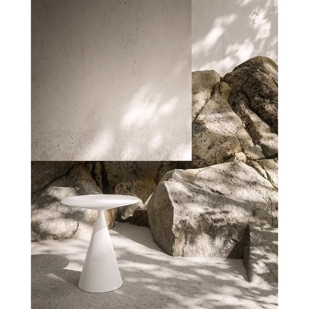 Introducing the Sleek Round Side Table from Desalto's Micro Clay collection. This playful and versatile piece adds a touch of whimsy to any environment while maintaining a timeless elegance. The 2024 version features a leather and cuoietto coating, creating a sophisticated and unique texture. Elevate your space with this artisanal luxury piece.