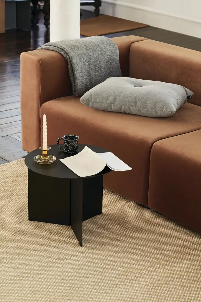 Like paper origami reimagined in metal, the Slit Table is named after the slit that appears when the frame is folded underneath the tabletop. Use on its own, or arrange in pairs or clusters. Available in a variety of colors and finishes.