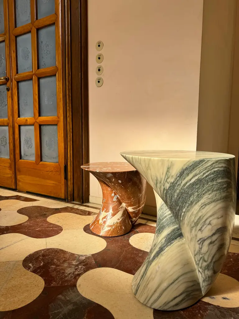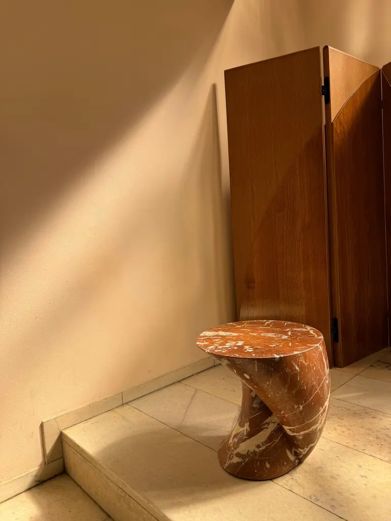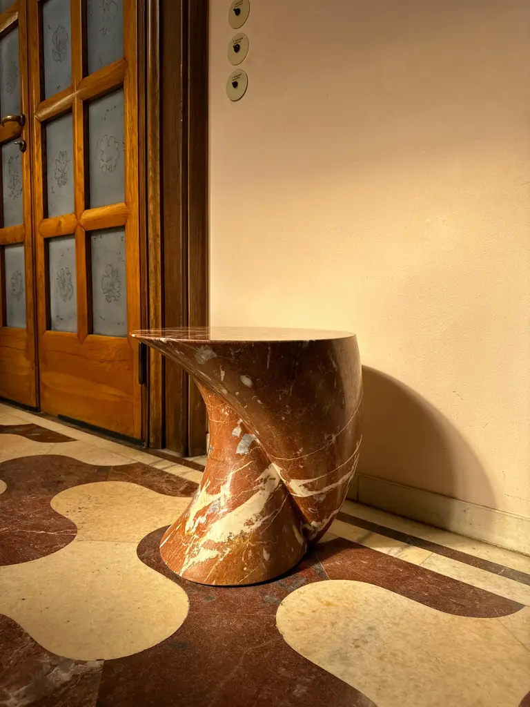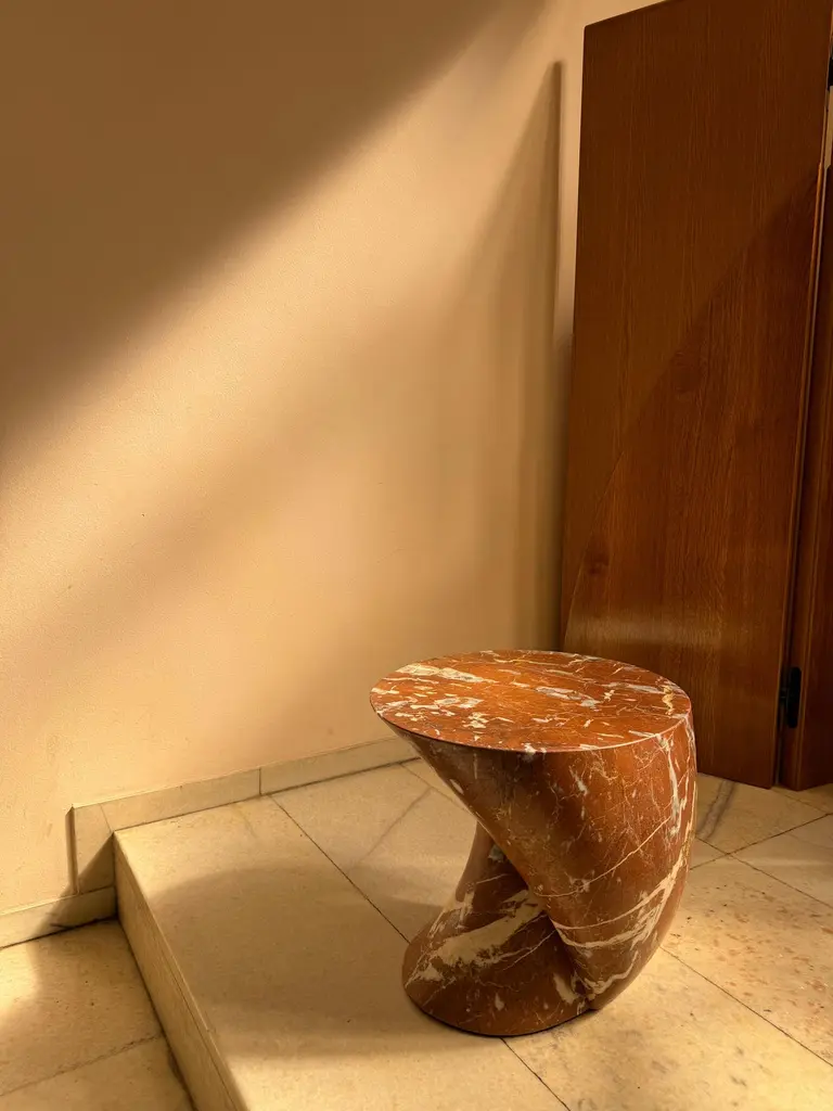 Small Departed Marble Side Table by Studio TOOJDesigned by Johan WilénDimensions: D 41 x H 40 cm.Materials: Soft-honed Rosso Francia marble.Introducing "DEPARTED" by Johan Wilén, a side table that embodies timeless elegance and understated sophistication. Crafted from exquisite marble and designed with Johan Wilén's signature style, it boasts simple yet striking lines that elevate any space with effortless grace. Hand-finished by skilled artisans in Italy, each table is meticulously crafted to perfection, showcasing the soft honed finish that accentuates the natural beauty of the stone. Available in various dimensions and customizable with a choice of stones.Founded in Stockholm, at Studio TOOJ, we are captivated by the allure of restrained beauty. The designers we proudly represent have a common denominator: quietly sophisticated, with a loud obsession with nuanced layers of details. With a commitment to sustainability and ethical production methods, we are here to bring you pieces that are not only beautifully crafted but also built to last.