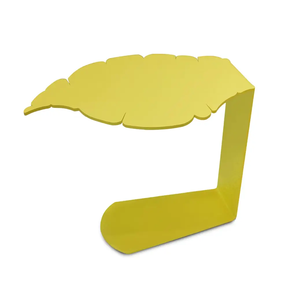 The Leaf Table in Yellow Lacquer encapsulates a harmonious blend of functionality and contemporary design. Expertly crafted from metal, it features a striking laser-cut and bent silhouette that draws the eye and introduces a sculptural element to any space. The matte yellow lacquer finish adds a vibrant pop of color, enhancing its aesthetic while maintaining versatility for various interiors. Ideal as a side table or statement accent, the Leaf side table exemplifies modern artistry and thoughtful utility. This piece is perfect for elevating both relaxed and sophisticated environments alike.