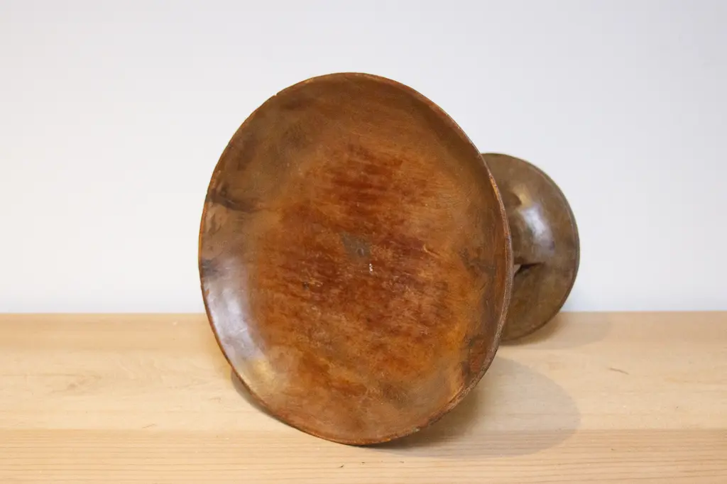 A vintage tribal Naga small side table, hailing from the enchanting tribal region of Nagaland in North Eastern India, bordering Myanmar. This stylish small end table carries a rich history, originally serving as an everyday bowl used by the Konyak tribe and other Nagaland tribes for presenting fruits and meals. Meticulously carved from a single piece of native wood, this Naga stool boasts a unique rounded concave top and a slim pedestal base, exuding timeless elegance.