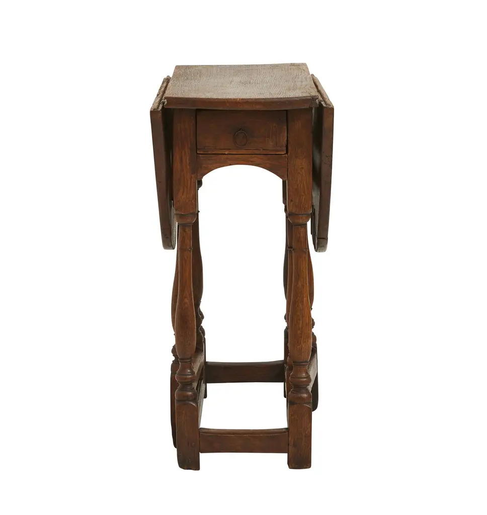 Small Vintage Traditional Oval Wood Table With Single-Drawer And Drop Leaf