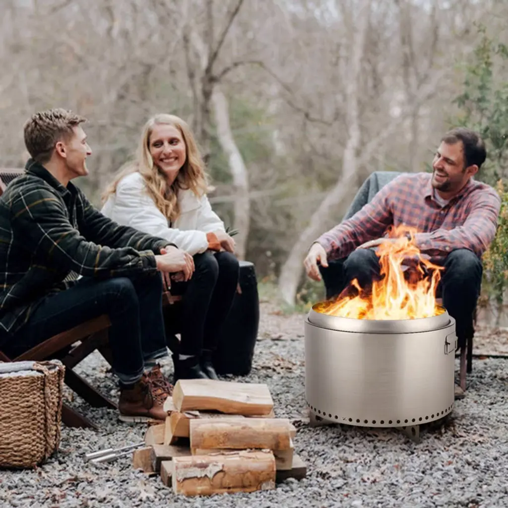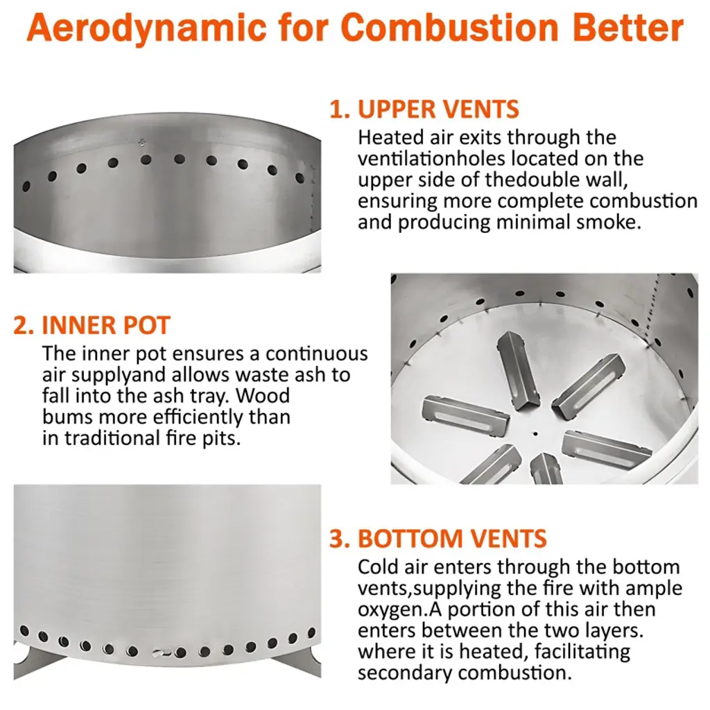 Smokeless Firepit 20.5inch Portable Outdoor Fire Pit With Removable Ash Base, Stainless Steel Wood Burning Fireplace For Camping, Outside, Bonfire,