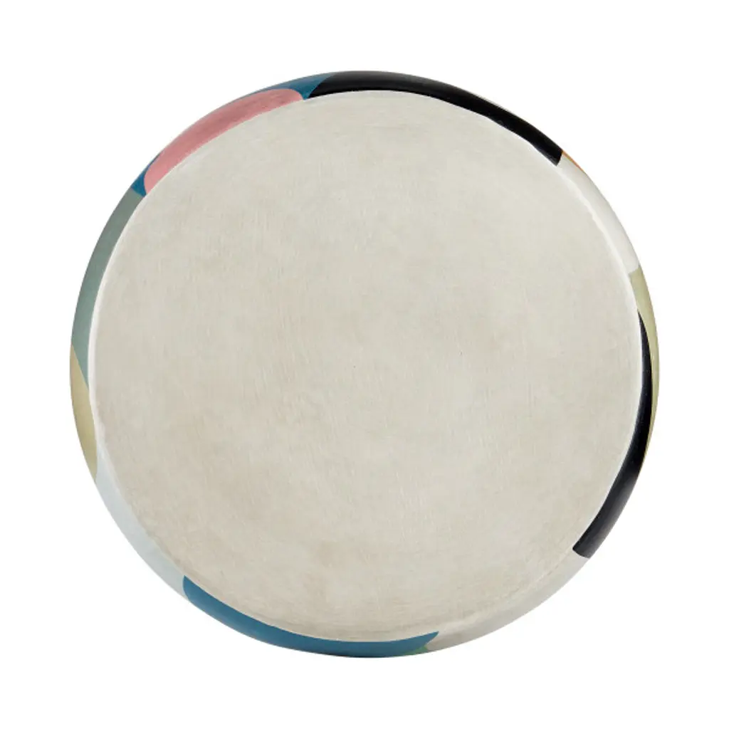 Made of terracotta with pops of color, the So Nouveau Accent Table belongs in the Art Decoratifs, or Art Deco, category thanks to its strong hues and graphic qualities. The elegant accent table has a shape that will add interest to its spot in a room. Because this table is hand-painted, it is truly an artisanal piece.