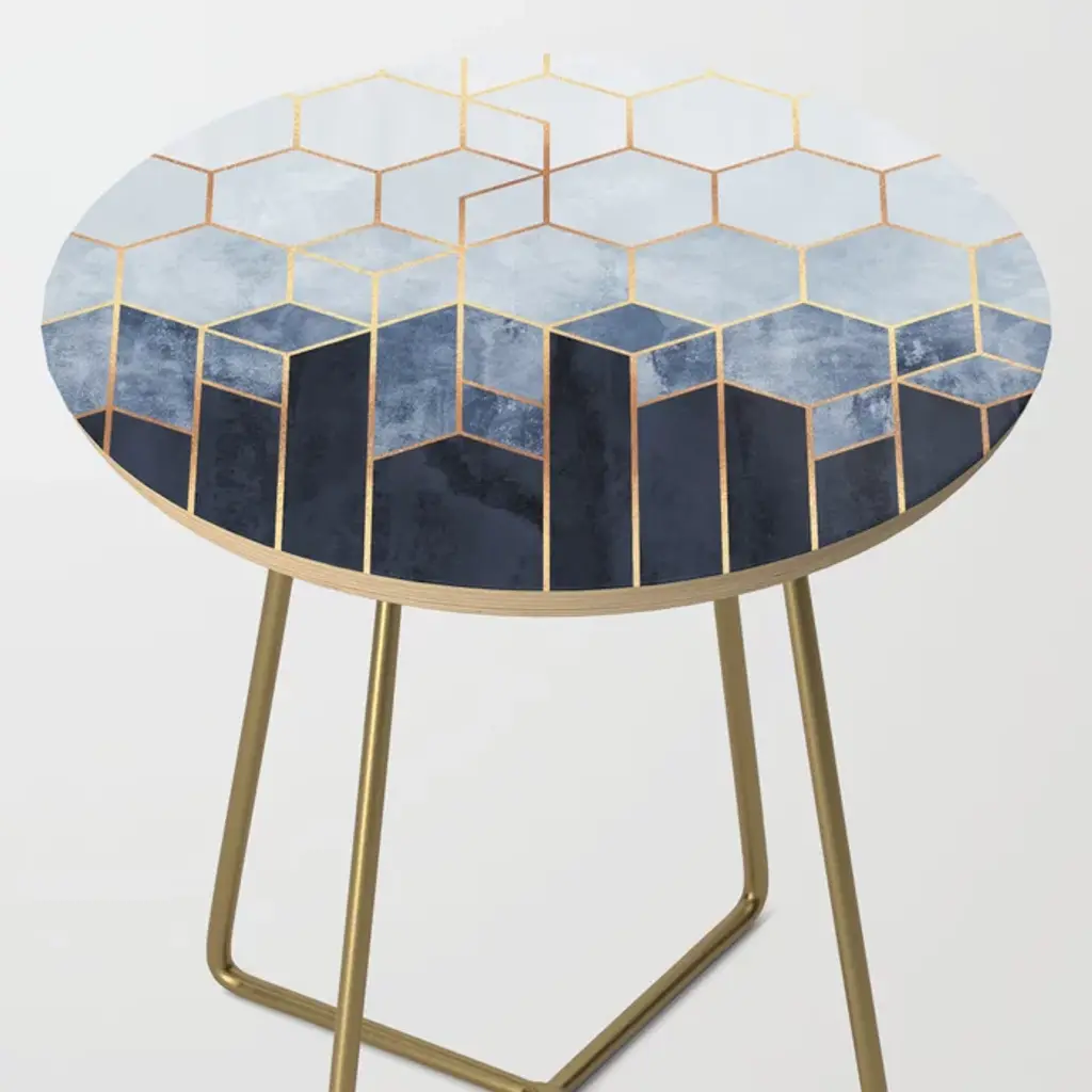 From sideshow to show-stopper, our side tables will be a stunning modern accent to your space. Selecting from our wide array of artist's designs printed with a satin finish on birch wood, you’ll take any room from zero to a hundred. Available in a square or round table top, and black or gold leg colors.Square: 19" x 19" x 19" (H)Round: 19" (diameter) x 19" (H)Baltic birch table top with beveled edgeHigh quality print with satin finishSteel legs available in black or goldAssembly requiredFor more info click here.SHIPPING: Items are made to order and typically ship within 3-4 business days. Click here for more information about delivery options.Furniture sales are final. Click here for more information on returns.
