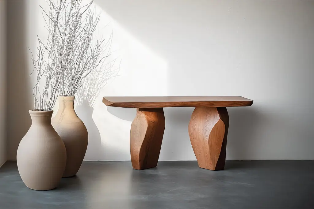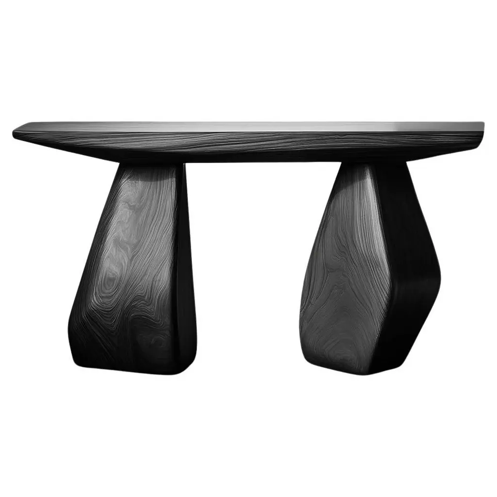 Solace No34 Accent Table – Pebble-Inspired Legs, Design by Joel Escalona—————————————————————Solace Console Table Series Design by Joel EscalonaThe Solace console table series, designed by Joel Escalona, embodies a quiet sense of balance and presence. With its sculptural legs and fluid contours, each table is a bold statement of form—where function yields to expression. More than furniture, these pieces exist as poetic objects in space.Inspired by Isamu Noguchi’s iconic Pigeon sculpture, the Solace series pays tribute to the fusion of traditional craftsmanship and modern abstraction. Echoing the curves and tensions found in Noguchi’s work, the silhouette of each table evokes a carved, organic form frozen mid-motion.Crafted in solid wood and produced one by one in our Mexico City workshop, each table carries its own subtle variations in tone, grain, and shape—enhancing its individuality. The natural qualities of the material, shaped by time and touch, make every piece a singular presence.Ideal for hallways, foyers, and living spaces, these console tables offer more than utility—they bring a sculptural rhythm to the room. Production time is 7–9 weeks, allowing for the precision and care that each unique piece deserves.—NONO is a Mexican design brand with more than 10 years of experience dedicated to the production of interior furnishings, editions, and custom-made projects. At NONO, we create pieces of extraordinary beauty, accommodating the particular needs and tastes of each client with exclusive high-quality designs.—Some details to consider when placing an order with us:• Catalog images are digitally generated. Actual products may slightly vary in texture, grain, and final finish due to natural material differences. Despite these variations, our expertise ensures each piece maintains high quality and matches the intended design.• All of our products are made to order, and the lead time for standard products is estimated to be 9 to 12 weeks, plus shipping time. However, special pieces or sculptures may require a longer lead time.• We offer customization in dimensions and finish for all of our furniture pieces, which may result in additional charges.• We only facilitate freight services by a third party. The client is solely responsible for any associated import/export taxes, as well as any necessary customs paperwork.• We are not responsible for any damages that may occur during shipping or for any customs-related delays.