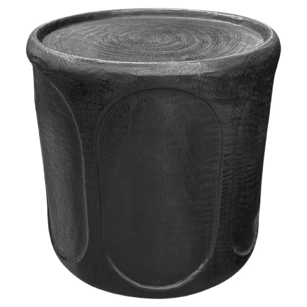 Solid Mango Wood Round Side Table Modern Organic, Burnt Finish