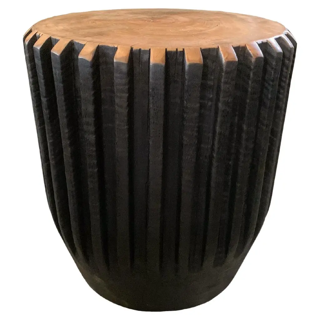 Solid Mango Wood Round Side Table Modern Organic, Burnt Finish