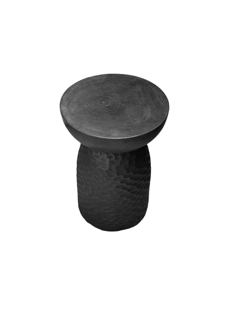 Solid Mango Wood Round Side Table Modern Organic, Burnt Finish