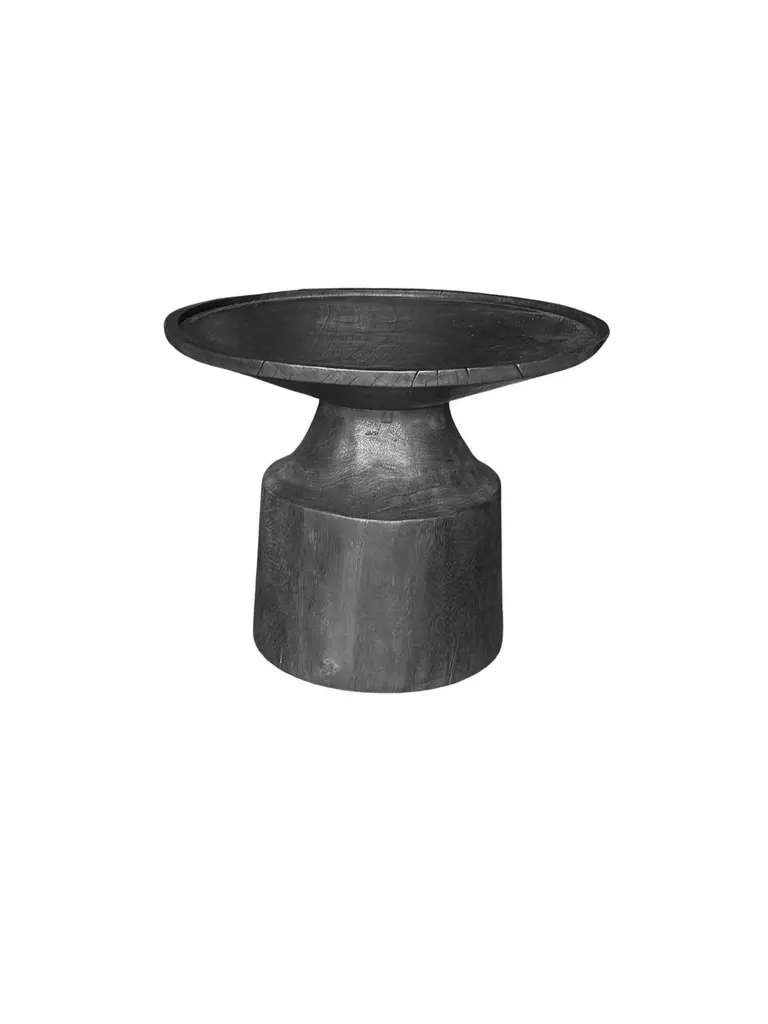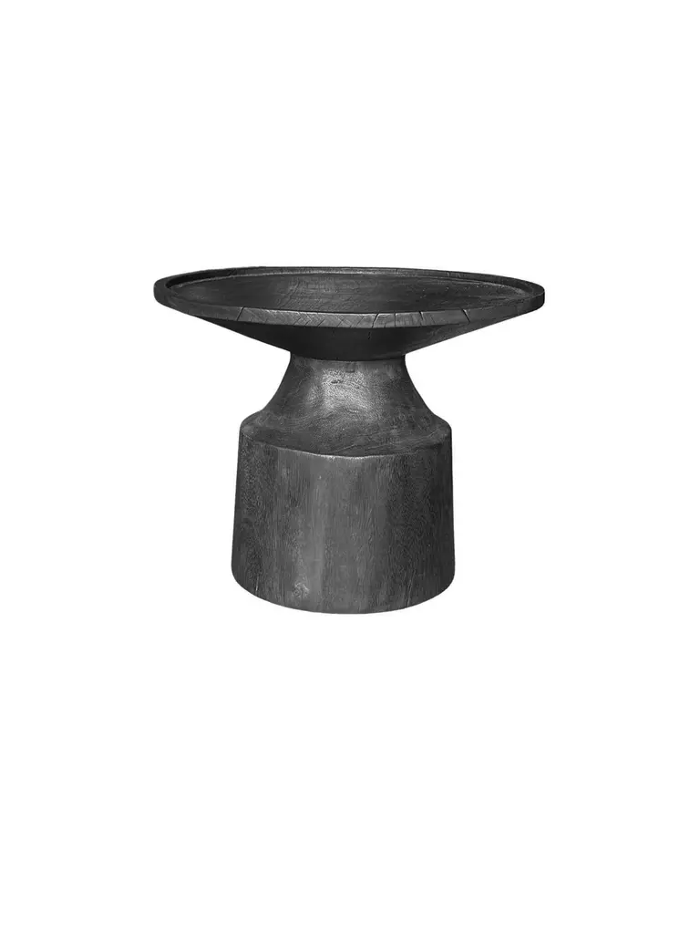 This round side table is crafted from beautiful mango wood, showcasing the natural grain and texture of the wood. The table has a unique burnt finish that enhances the deep tones of the wood, giving it a rustic yet sophisticated look. The burnished surface adds a rich, earthy appeal, with subtle variations in color that make each piece one-of-a-kind. Perfect for modern or industrial interiors, this table offers both style and functionality, whether used as a side table, nightstand, or accent piece. Its sturdy design and timeless finish make it a versatile addition to any room.