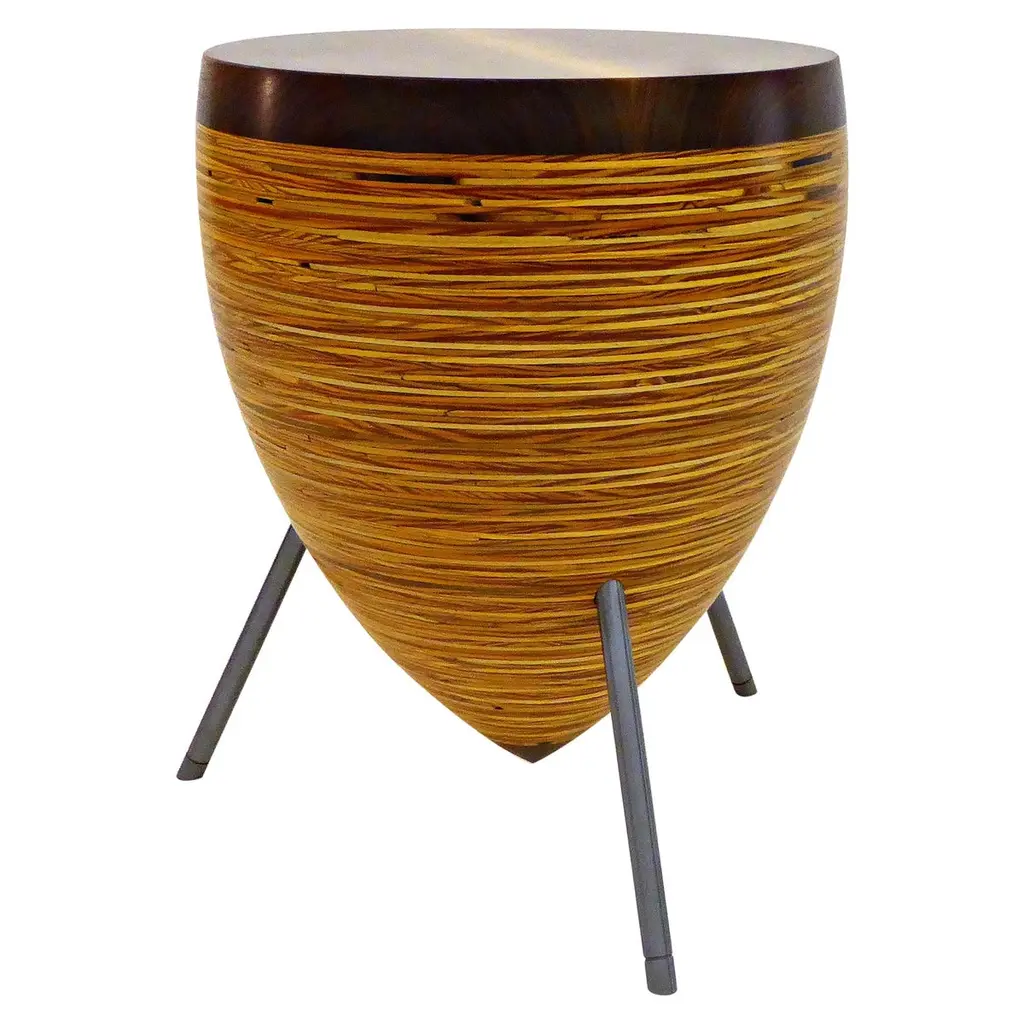 Solid Sculptural Mango Wood Side Table Burnt Finish Modern Organic