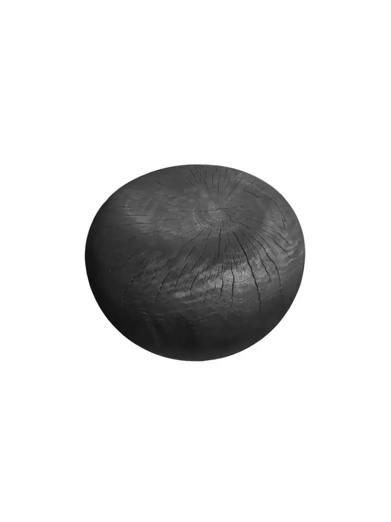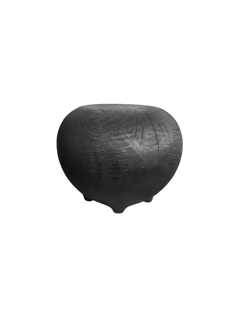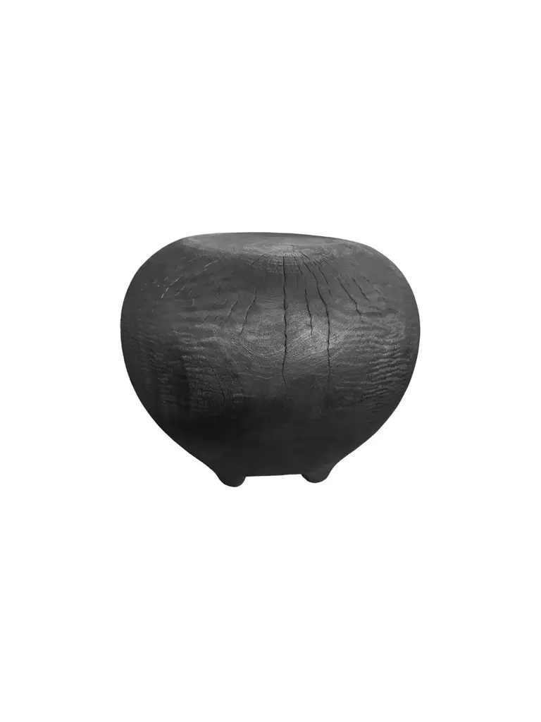A wonderfully organic round side table that sits on 6, low, arched legs that blend with its form. Its neutral pigment and subtle wood texture makes it perfect for any space. This table was crafted from a solid trunk of mango wood. To achieve its pigment the wood was burnt numerous times and then finished with a clear coat.