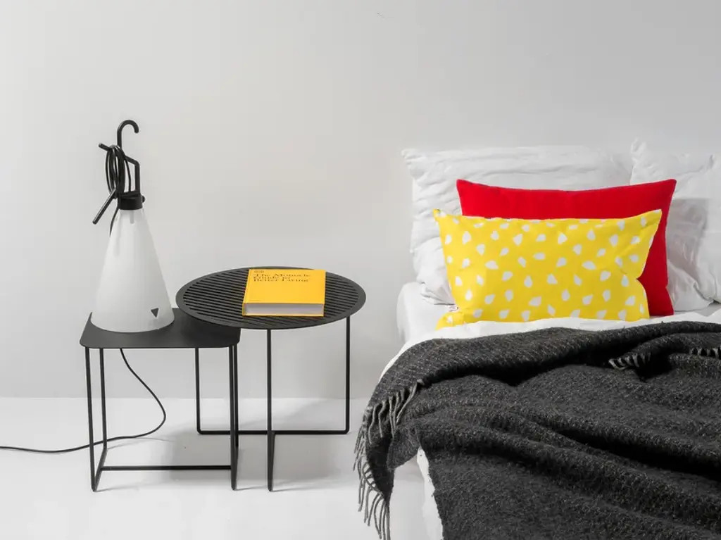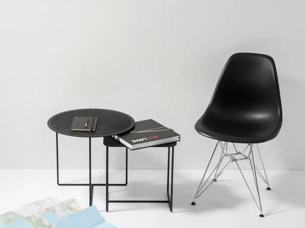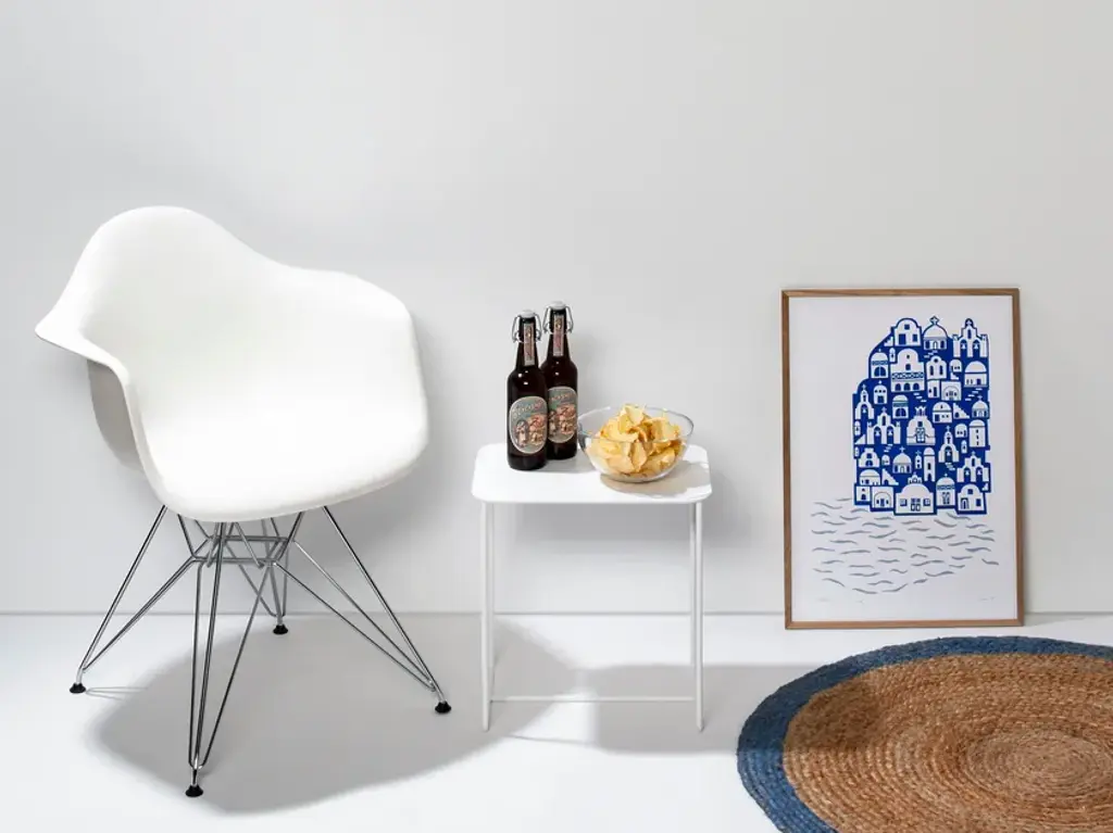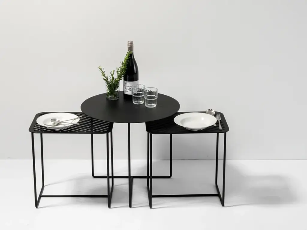 This compact side table feels at home everywhere – as a plant stand in your urban jungle, an end table next to your couch or armchair, or a practical entryway table or nightstand. The flexibility of the Solid 02 Side Table knows no bounds. The elegant rectangular solid tabletop is supported by a frame of round iron bars for a look that’s understated yet full of personality.Its low height allows the Solid 02 Side Table to fit perfectly under the round side tables of the Solid & Grid collection, letting you create attractive groupings. Its u-shaped legs makes the Solid 02 Side Table suitable for patios and balconies as well. Available in black and in white.Material: Sheet steel and round iron bars with powder coatingPurchase includes: Side tableIn designing our Solid & Grid collection, we set out to create a style-defining, recurring graphical structure for furniture and home accessories. We were aiming for a pattern that looks light and elegant while offering sturdy durability. And we achieved this with a diagonally cut grid made of steel. After we came up with our first models featuring diagonal slits, we designed several solid versions as well. All furniture and home accessories in the Solid & Grid collection are precisely cut using a laser and covered with a durable powder coating.