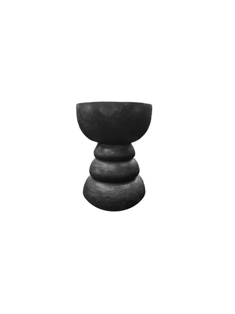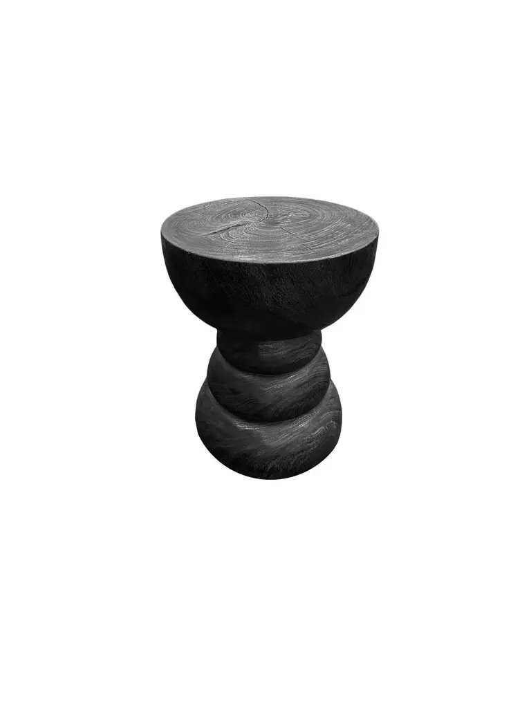 A wonderfully sculptural round side table. Its neutral pigments make it perfect for any space. A uniquely sculptural and versatile piece certain to invoke conversation. It was crafted from a solid block of mango wood and has a smooth texture finish. The wood texture present on its sides adds to its charm.