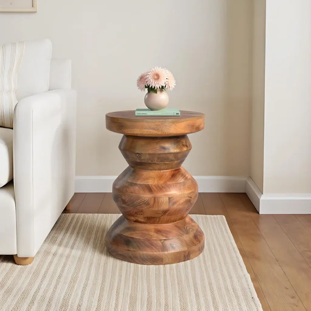 The side table is a modern piece of furniture that can be used in both residential and hospitality settings. It is made of brown lacquered acacia wood, which gives it a warm and natural look. The side table has a simple and minimalist design that fits well in any modern interior. It can be used as a bedside table, next to a sofa or armchair, or in a hotel room as a functional and stylish accessory. The side table is a versatile and practical piece that can enhance the aesthetic appeal of any space.