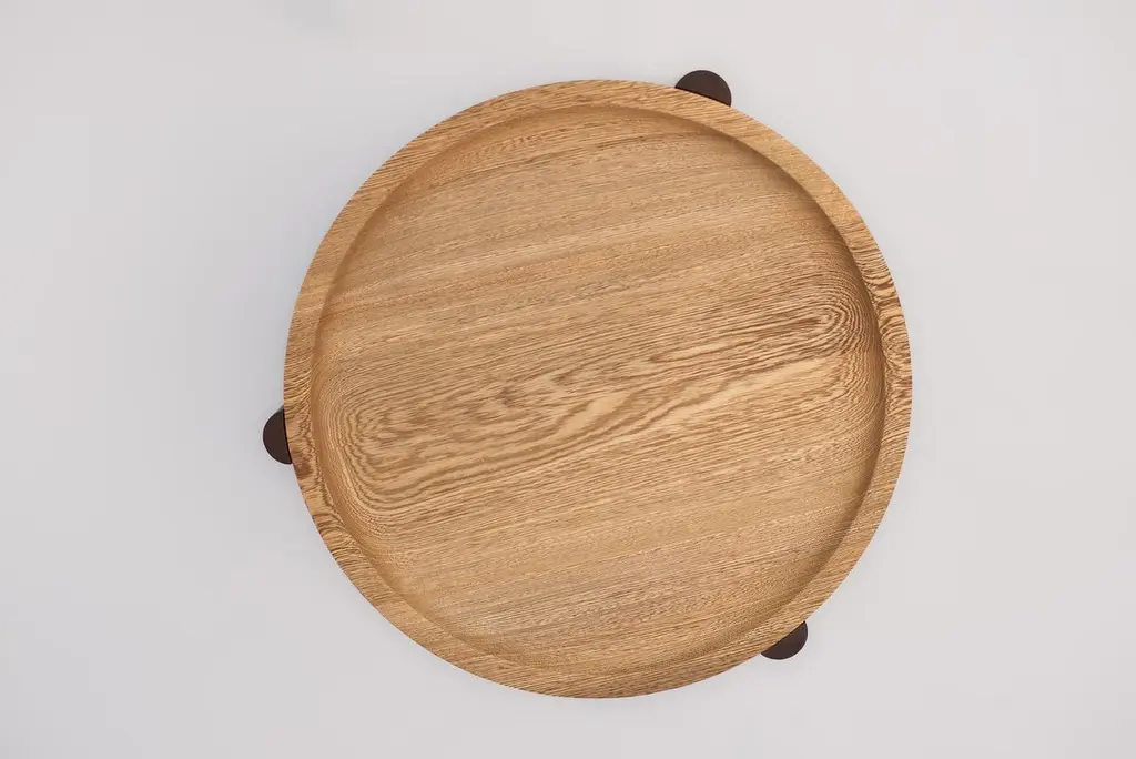 The Ocum tables are designed with a focus on balanced proportions, simple geometric forms, and minimalist construction. These versatile side tables feature removable tops that can also be used as serving trays or centerpieces. Each table consists of four separate components. The top rests on three points of a detachable base, formed by two interlocking elements joined with a small solid brass pin. This thoughtful construction allows the tables to be assembled and disassembled easily, improving mobility, reducing shipping volume, and lowering their carbon footprint.Handcrafted on a lathe, each piece demands a high level of precision and concentration from the artisan, ensuring exceptional craftsmanship in every table._finish : waxavailable in: Mexican Rosewood and Mexican Ebony_Our pieces have a finish based on natural waxes and oils that protect the surface, accentuate the grain and texture and preserve the warm feeling of the wood.All the wood that we work with to create our pieces comes from local "ejidos" (communal land) with responsible forestry management programs and certificates._Wood is a natural and organic element. It will vary in color and grain according to each wood plank’s unique characteristics and applied finish. The image shows only one hue of many, making each chair a one-of-a-kind piece of furniture.