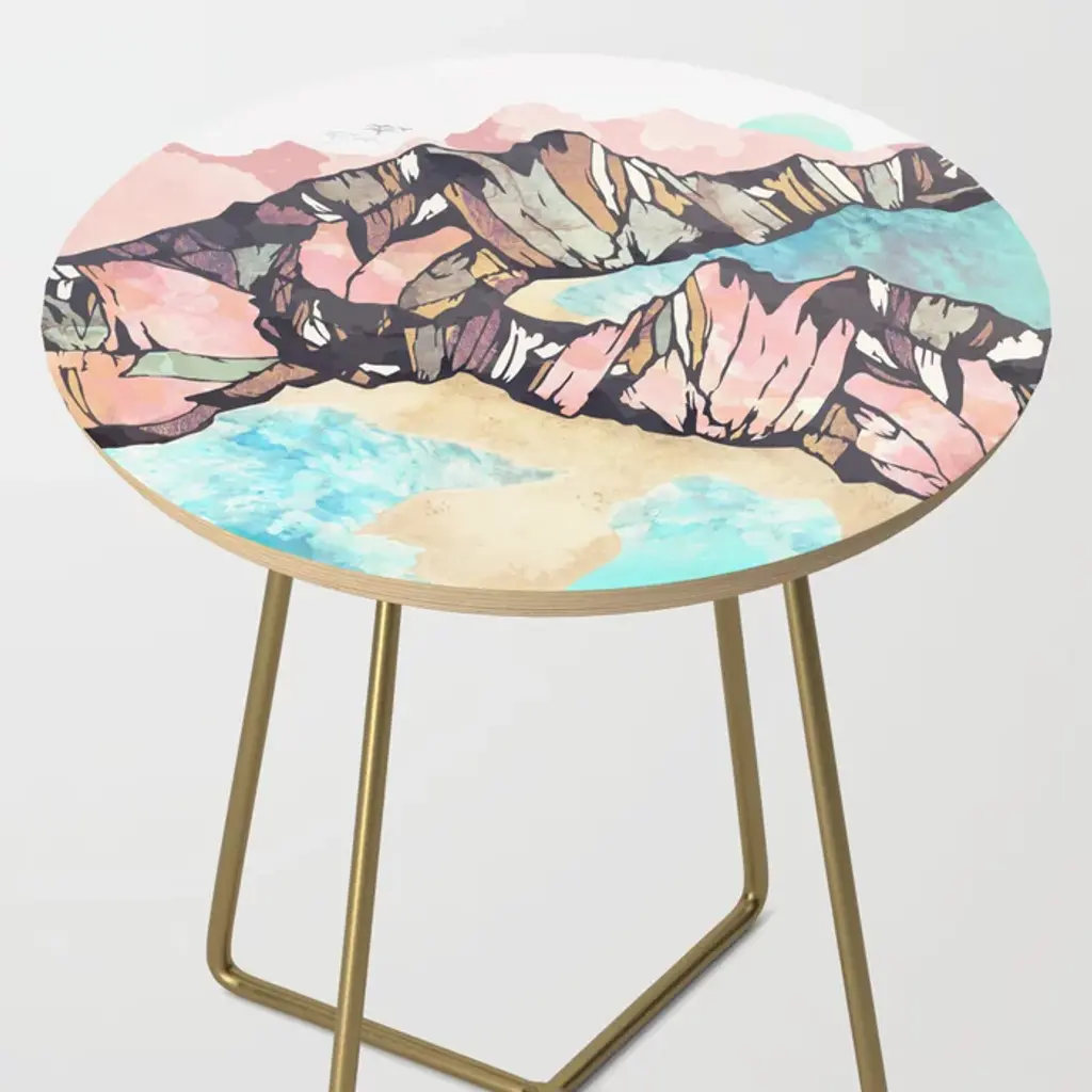 From sideshow to show-stopper, our side tables will be a stunning modern accent to your space. Selecting from our wide array of artist's designs printed with a satin finish on birch wood, you’ll take any room from zero to a hundred. Available in a square or round table top, and black or gold leg colors.Square: 19" x 19" x 19" (H)Round: 19" (diameter) x 19" (H)Baltic birch table top with beveled edgeHigh quality print with satin finishSteel legs available in black or goldAssembly requiredFor more info click here.SHIPPING: Items are made to order and typically ship within 3-4 business days. Click here for more information about delivery options.Furniture sales are final. Click here for more information on returns.