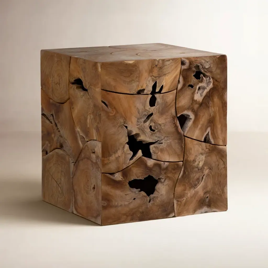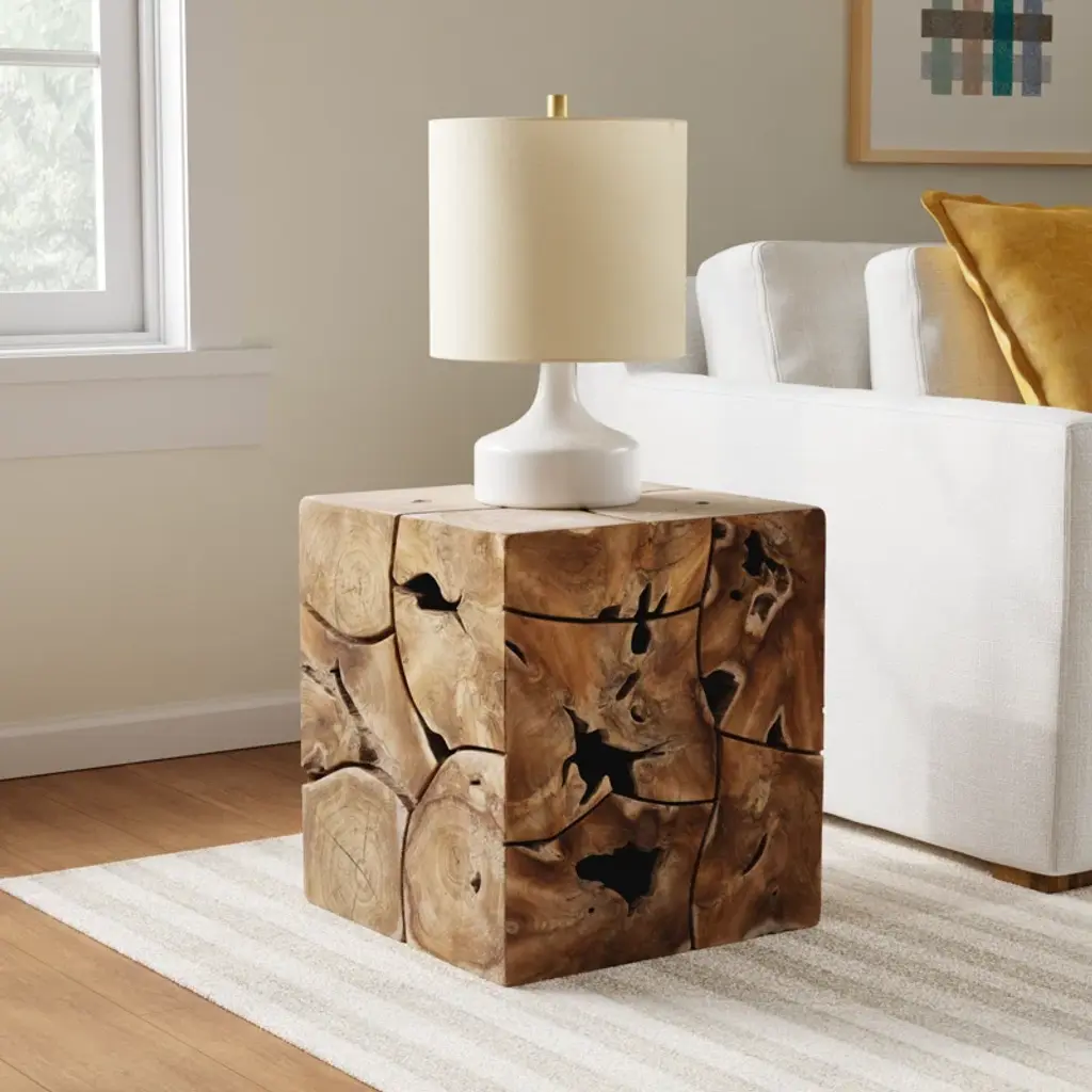 Say hello to this square end table, a perfect blend of rustic charm and modern functionality. Crafted from solid teak wood, it showcases the natural wood grain and knots for an authentic touch. The tabletop offers ample space for your favorite books, a potted plant, or a steaming cup of tea. Plus, the solid wood base provides stability without compromising on style. Designed for residential use, this end table is a lovely addition to your living room or bedroom, bringing warmth and character to your space.