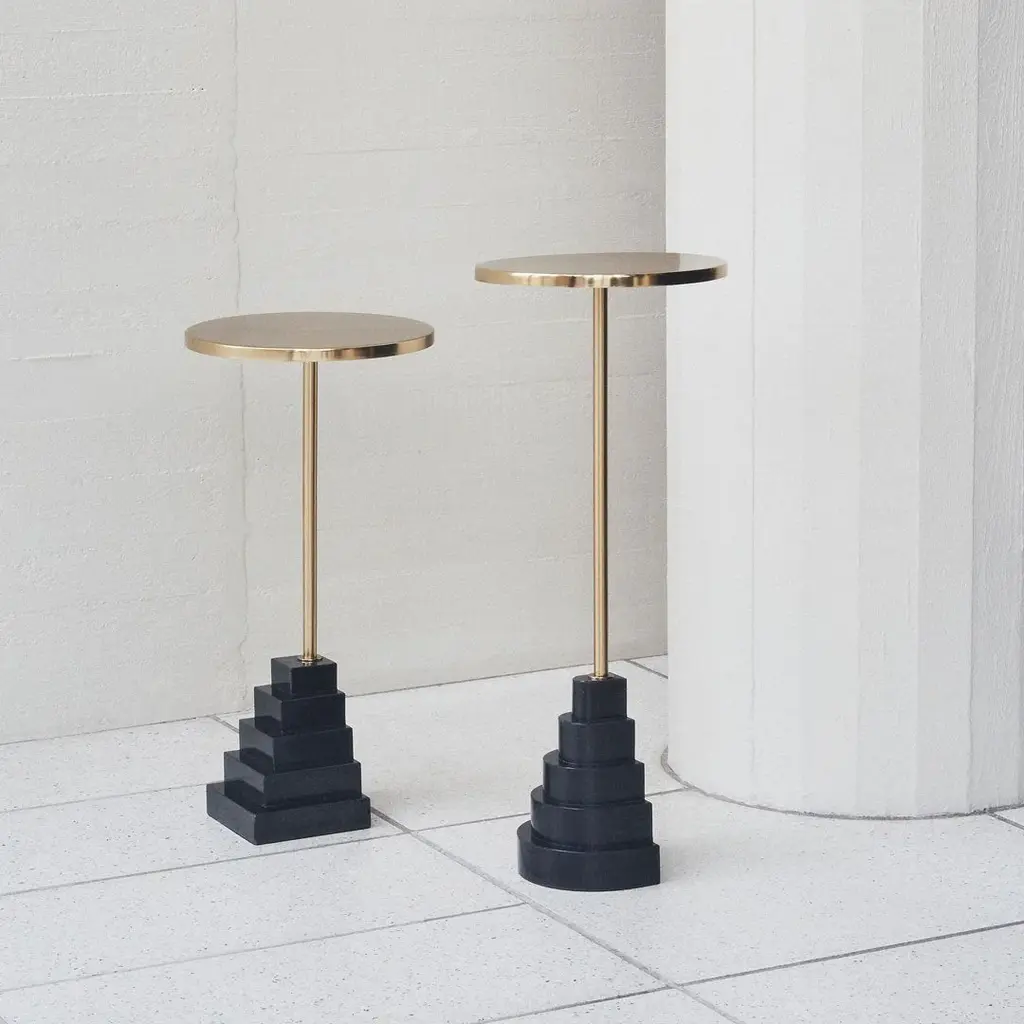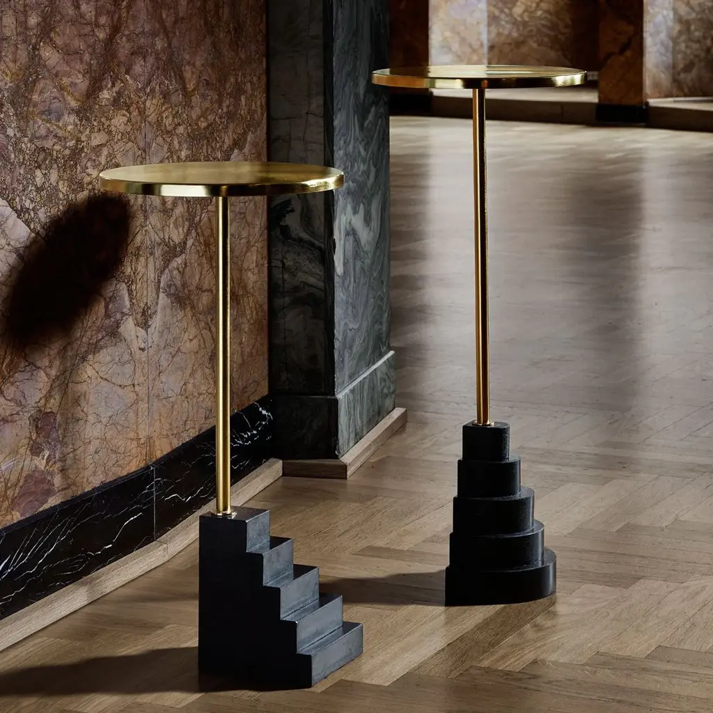 Stunning pieces of furniture often resemble pieces of art. The Solum tables are lovely side tables, they would even be great as console tables in a hallway or a dining area. The unique shape will make them stand out in any room in the home and truly appear as pieces of art. The tables are made of a foot in marble or granite in a graphic design fitted with an elegant table top in black or gold.