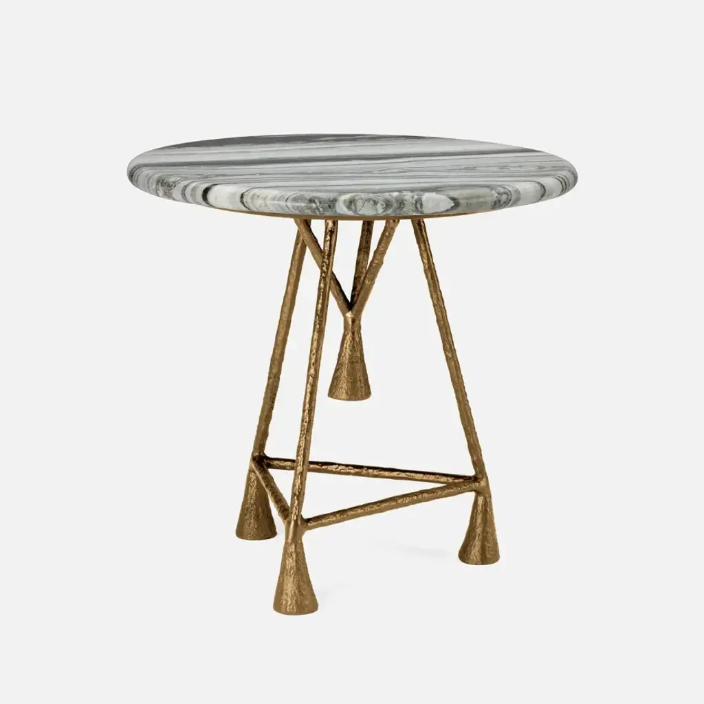 Sonny Dark Veined/flat Gold White Marble/textured Aluminum Side Table 24"d X 22"h