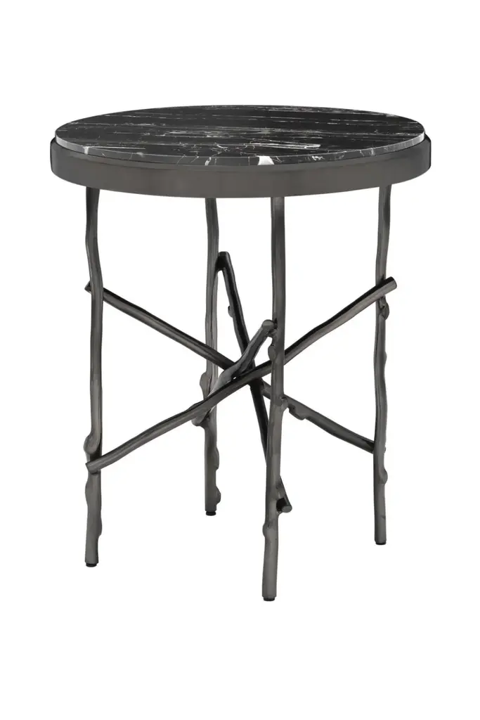 Made from glamourous dark veined white marble, the Sonny side table exudes luxury and adds an artistic flare with textured aluminum legs.