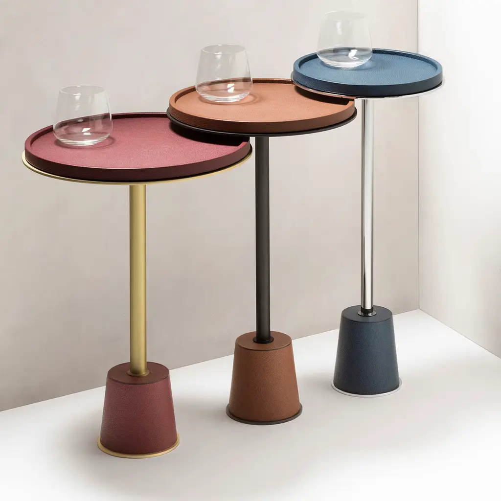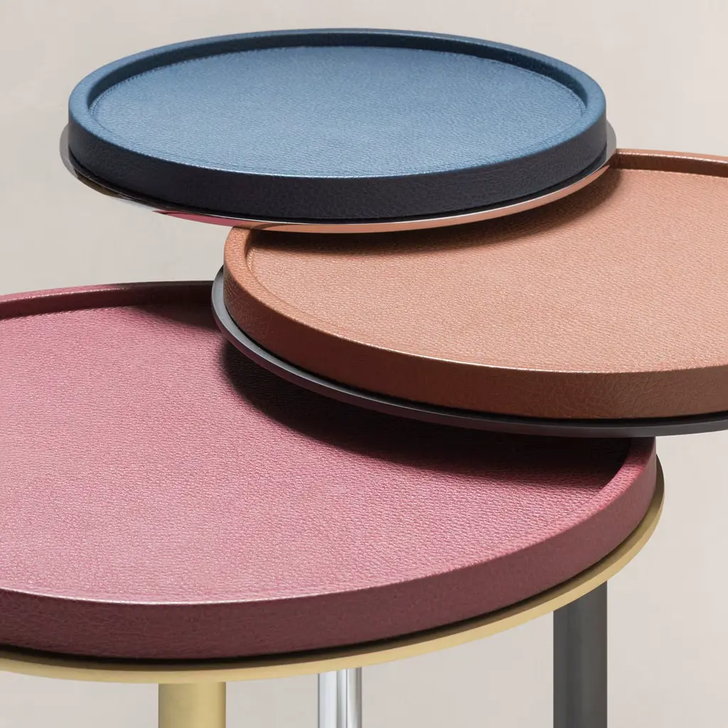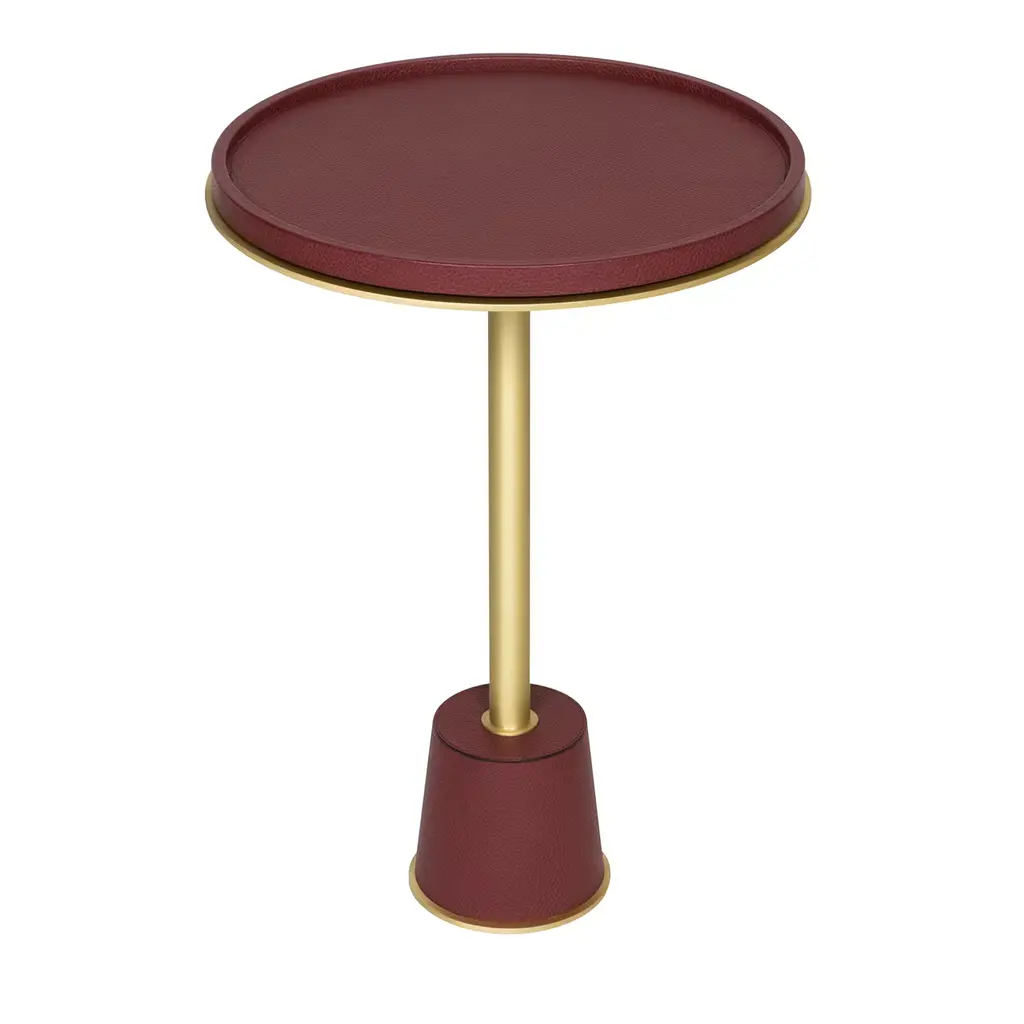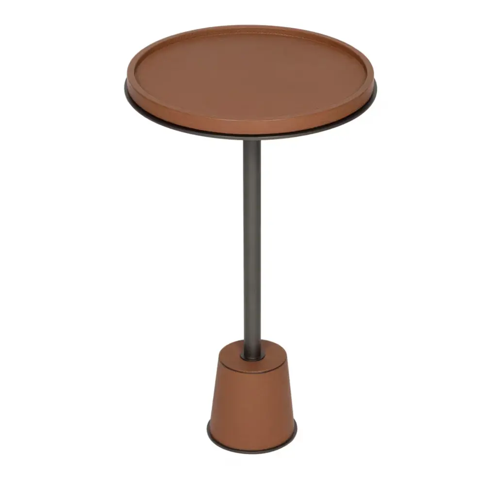 Metal structure available in different finishes(chrome/brass/bronze) boasting a leather top and base.