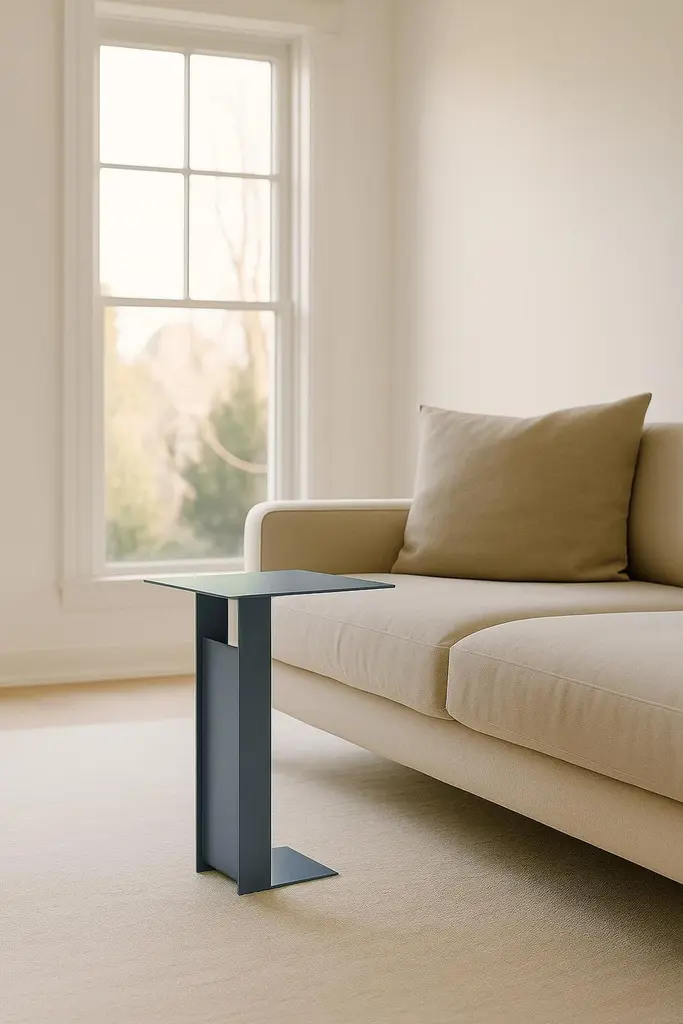 Span Side Table, Handmade Metal, Minimal And Modern Look In Blue