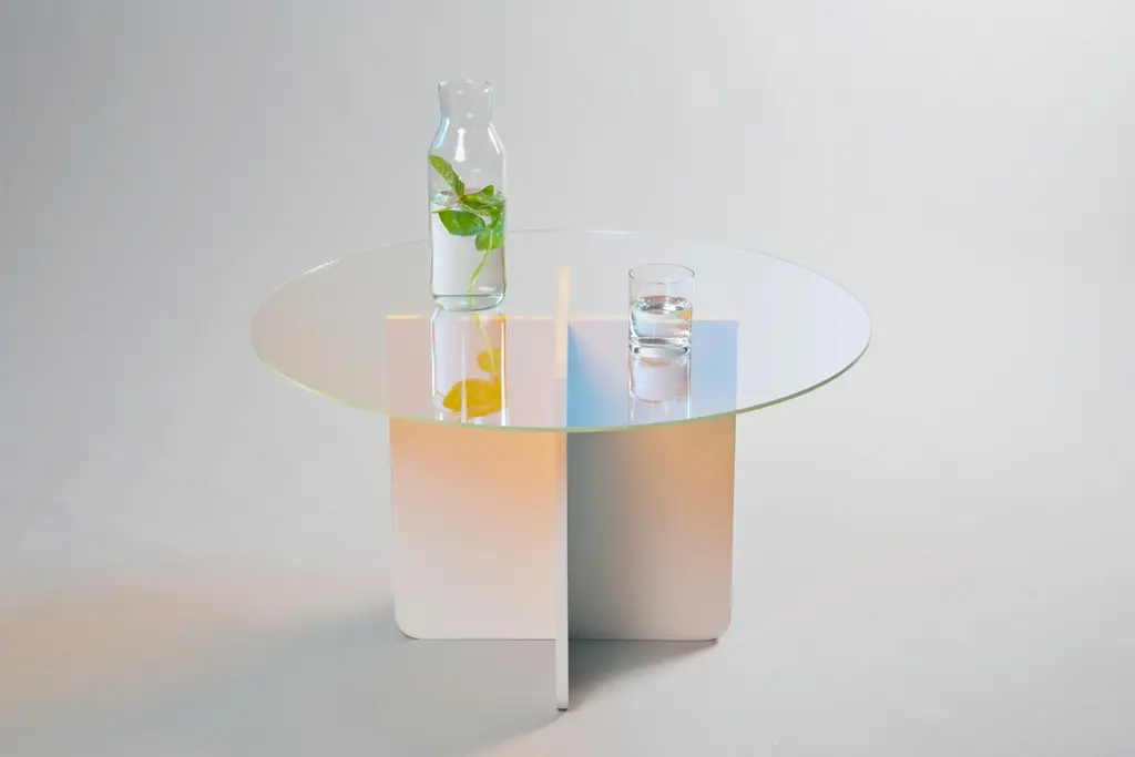 Spectra side table - Rona KoblenzDichroic glassMeasures: 46 x 70 x 70 cm"A spectrum (plural spectra or spectrums) is a condition that is not limited to a specific set of values but can vary infinitely within a continuum".- Rona Meyuchas-Koblenz is inspired by reflection and refraction, absorbent and repellent. The studio’s continuous interest to create a timeless dialogue from past to future through presently active living, has been expressed in its current work, ‘Spectra’, using Dichroic finished glass as a dominant Material. The environment we live in is affected by a spectrum of different conditions. Kukka chose to use Dichroic glass to help express the significant conditions affected by light and time, reflection and refraction. Similar to the social behavior expressed through social media channels and the internet: absorbing and repelling, yet the glass, a modern Material used since the Roman Empire, has its own structural, solid properties. The quartz is an abundant mineral in earth. The slabs are solid, reflecting physical, stable and timeless design. "I am particularly interested to create timeless design by using simple geometry and basic materials. The dialogue between the two is expressed in Spectra"- Rona Meyuchas-KoblenzRona Meyuchas-KoblenzBorn in Tel-Aviv, Rona is an internationally acclaimed product designer, art director and researcher. She graduated in 1999 with a Master degree from the Scuola politecnica di design in Milan and started her career by working in different design consultancies in Milan and London.Rona's experience in design and manufacturing then motivated her to create products under her own label, and her first collection was released in Milan during Salone del Mobile 2007 at Spazio Romeo Gigli. The following year she was approached by the British embassy in Milan to exhibit selected products at The Galleria d’Arte Moderna in Milan, an exhibition curated by Sir Paul Smith and Moroso.The Minimalist democratic approach and an honest design are most recognized with Rona’s style and work. In 2010, she created the brand kukka, which works for architects, interior designers, private clients and retailers such as Conran, Paul Smith, La Rinascente, Selfridges, or De Padova.The studio, underpinned by creative stimulation, specializes in experimenting with materials, manufacturing methods and technology.Rona is also a visiting lecturer (V&A, LFA, Design Museum talks, ICFF, Shenkar College, Plymouth university) a writer (BVD Magazine) , tutor (Domain Boisbuchet, Shenkar College) and the founder of Designers in the Middle. Exhibitions2018 Contemporary Tapestry for i-mesh - Salone Del Mobile, Milan ALCOVA2017 Fresh Paint art fair - Blinds, Spectra - Steinhardt Museum of Natural History 2017 Fresh Paint art fair - amphitheatre, Mega Block installation - Steinhardt Museum of Natural History Tel-aviv2016 Design Museum talks program, London Design Festival - presenting Designers in the Middle2016 Spectra with Frame Magazine - Salone Del Mobile - Milan2015 Caesarstone UK installation - Super brands , Tent - London2015 19 Greek street - The art of progress - London2015 Salone del mobile – designjunction - Milan2015 Salone del mobile – URBO - Milan2015 Maison et Objet2014 Gallery Joseph – Paris design week2014 DesignSpace & Caesarston – Zeva Tari TLV2014 The Green Room at Design Junction – Salone Del Mobile, PalazzoMorando, Milano2013 Design Junction – London Design Festival, The sorting office WC12012 Design Junction – London Design Festival, The sorting office WC12012 DesignSpace – TLV, Israel2011 HiddenArt – London Design Festival – Earls Court2011 Design Junction – London Design Festival – London WC12011 Shoplifters/Habitat - Habitat headquarters, Israel2010 La Rinascente Design Supermarket – Salone Del Mobile Milan2009 D:sign – Museum quarter Vienna2009 100% design Tokyo - DesignBoom2009 Palazzo Reale -Galleria Di Arte Moderna – Milano Salone del mobileBritish Design Embassy – curated by Paul Smith & Moroso2009 MACEF - Milan2008 Our Eco Gallery– Notting Hill, London2008 Lighten-Up – Newcastle design week2008 Lighten-Up – London design week – Earls Court2007 Right_here satellite exhibition – Vienna design weeks2007 Napkin project – The gallery soho. 2007 designersblock at the Milan Salone del mobile – Studio Romeo GigliLectures and workshops2019 London Festival Architecture - “Collaborations” curated by Melodie Leung from Zaha Hadid Architects and the Museum of Architecture 2019 Jerusalem Design week - Designers in the Middle with Galit Gaon 2018 Reflection refraction - The 5th Lamp Festival, Tel - Aviv2018 "De Fence" workshop - Tutor Domain De Boisbuchet2018 "Soft Architecture" - Panelist - A Discussion Panel during Salone Del Mobile moderated by Joseph Grima and Cristina Colli. 2018 "Merkaha" workshop - Tutor - in collaboration with Croceira Amorim,Design Terminal Bat-Yam and Shenkar Collegeof Engineering & Design2017 Shenkar College of Engineering & Design - Curatorial Design post Graduate course2017 V&A, Global Design Forum, LDF, Designers in the MiddlePresenter and panelist2017 ICFF, at the Javits Centre. Designers in the Middle discussion panel - Presenter and panelist2016 Rihutim - Tel aviv - Spectrum2016 Design Museum London - LDF - Designers in the MiddlePresenter and panelist2016 Domaine du Boisbuchet - FR - Tutor - Illuminating the woods2016 ILGBC (Israeli Green Building Council) - IL2015 OT Haitzuv Design Award - IL2014 Holon institute of design and technology - IL2009 Plymouth University - UKAwards and achievements2017 Winner - LG collaboration program2015 Shortlisted - WIN award - Cubo Light2015 Finalist - Ot Haitzuv – 22Rothschild2014 Finalist - Ot Haitzuv – 3E2008 Recognition of excellence in design from the Israeli government2006 Granted Patent - Yplate (A feeding device).