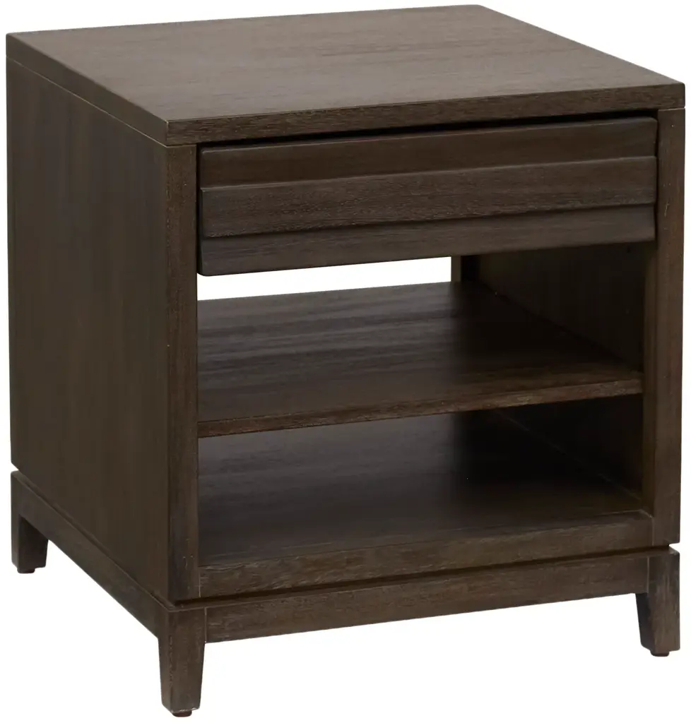 Spero Cocoa End Table Enhance your living space with the Spero Cocoa End Table, a perfect blend of modern elegance and practical design. Crafted in a warm cocoa finish, this table features clean lines and a natural wood texture, exuding effortless sophistication. The open shelf offers space for display or easy-access storage, while a single drawer provides a sleek solution for tucking away smaller items. Versatile and timeless, this end table is a stylish companion for sofas, chairs, or bedside use. Dimensions: 24" L x 24" W x 24.75" H