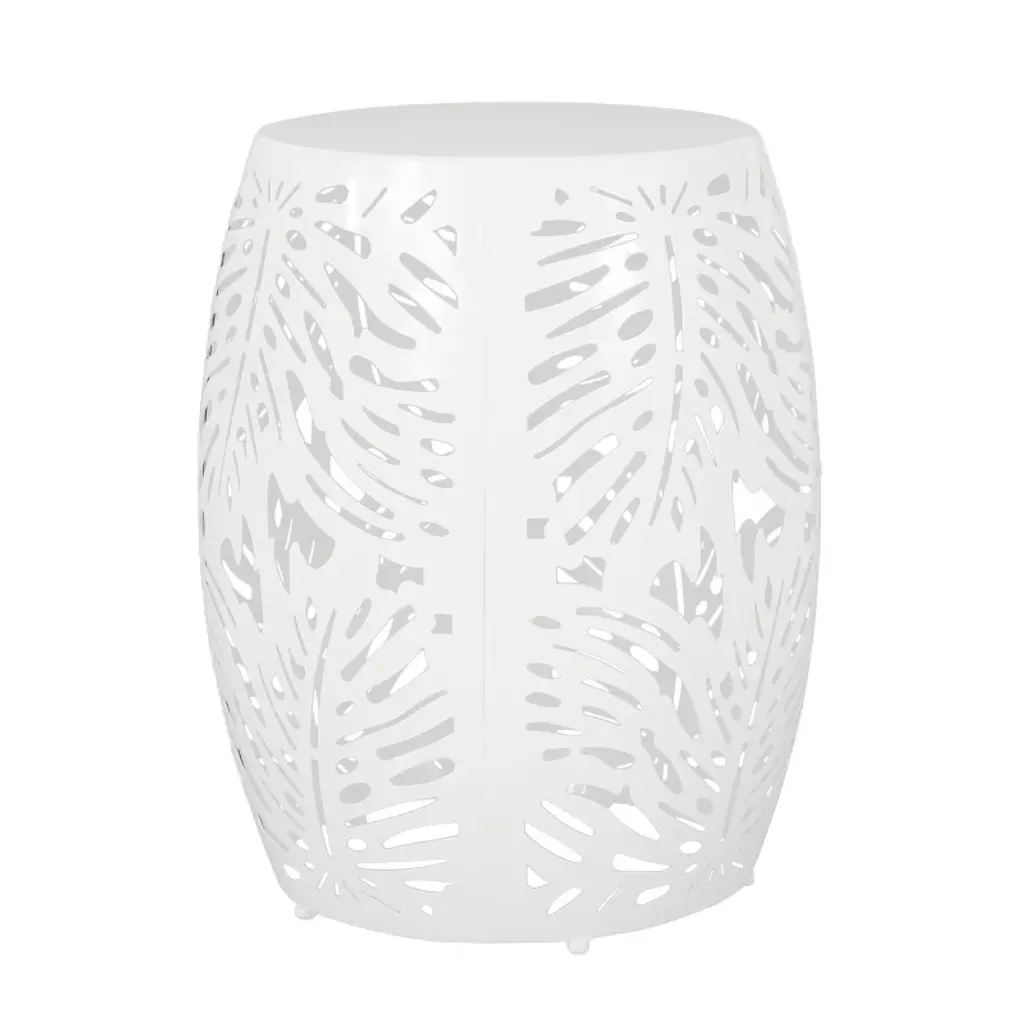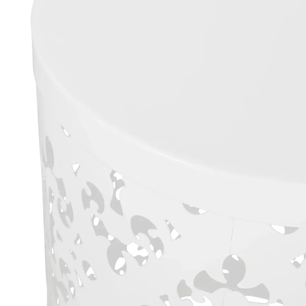 Bring modern elegance to your space with a sleek cylindrical design and intricate iron cut detailing. The refined floral pattern enhances visual appeal while allowing light to pass through for an open, airy feel. Built with a powder-coated iron frame, it offers exceptional durability and stability for both indoor and outdoor use. A minimalistic yet stylish aesthetic makes it a versatile addition to any patio, deck, or living area. Ideal for holding drinks, plants, or decorative accents, this table combines function with contemporary charm.