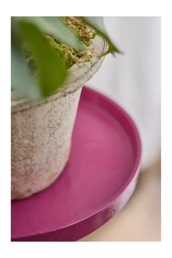 Made from recycled aluminum, this pedestal-style side table can also function as a plant stand. Its saturated pink hue adds a pop of color to indoor or covered outdoor spaces.