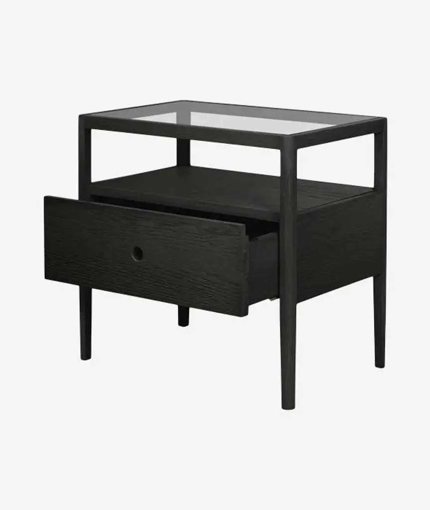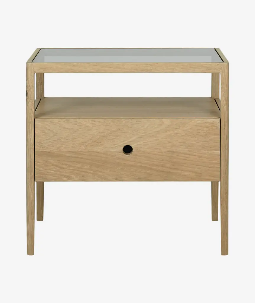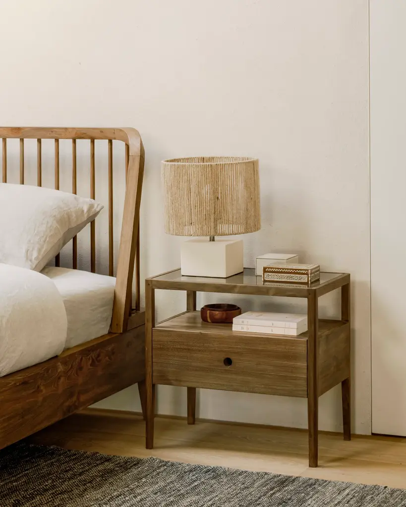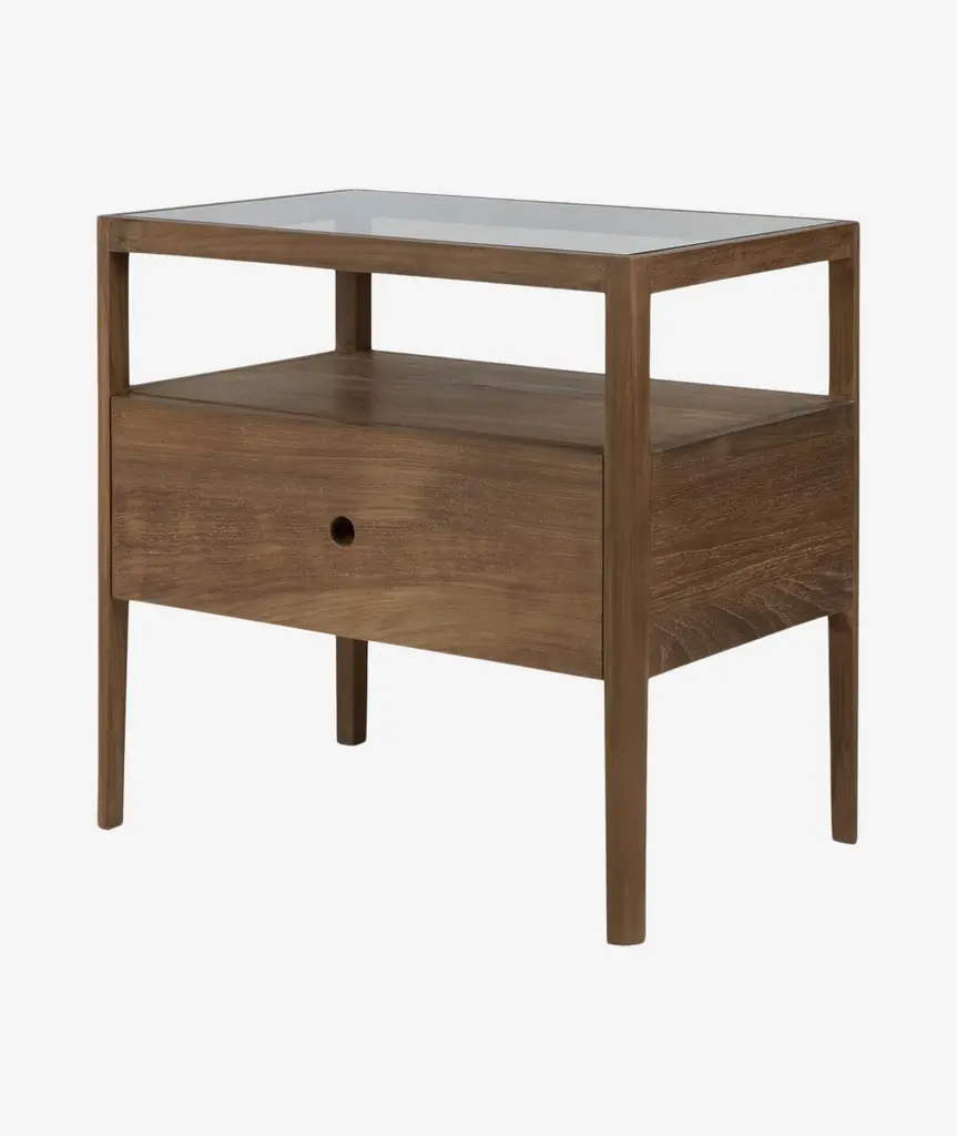 With its one drawer, open space and slightly tapered legs, the Spindle bedside table is the perfect no-nonsense companion for the striking Spindle bed. Reclaimed teak offers a truly unique finish for each and every item — the origin of each hand-finished piece of furniture carries its own story in its material.