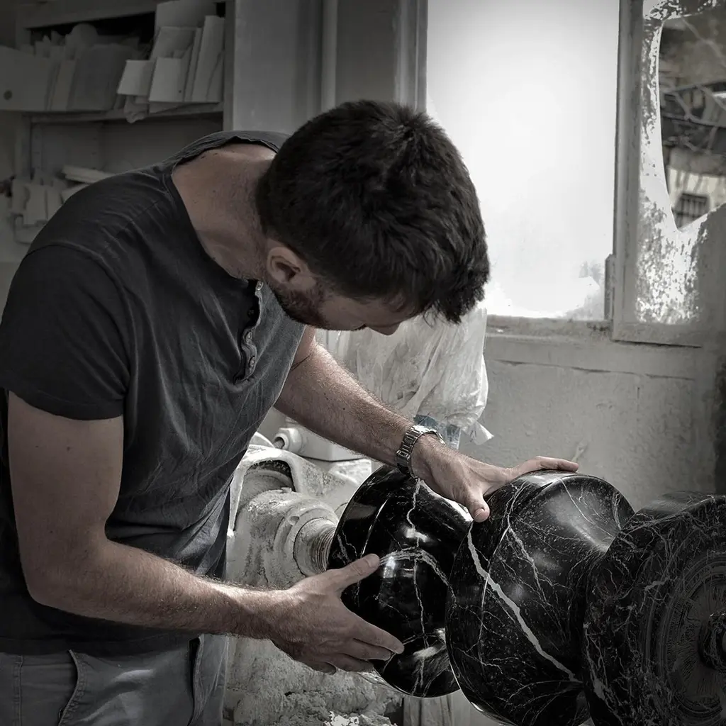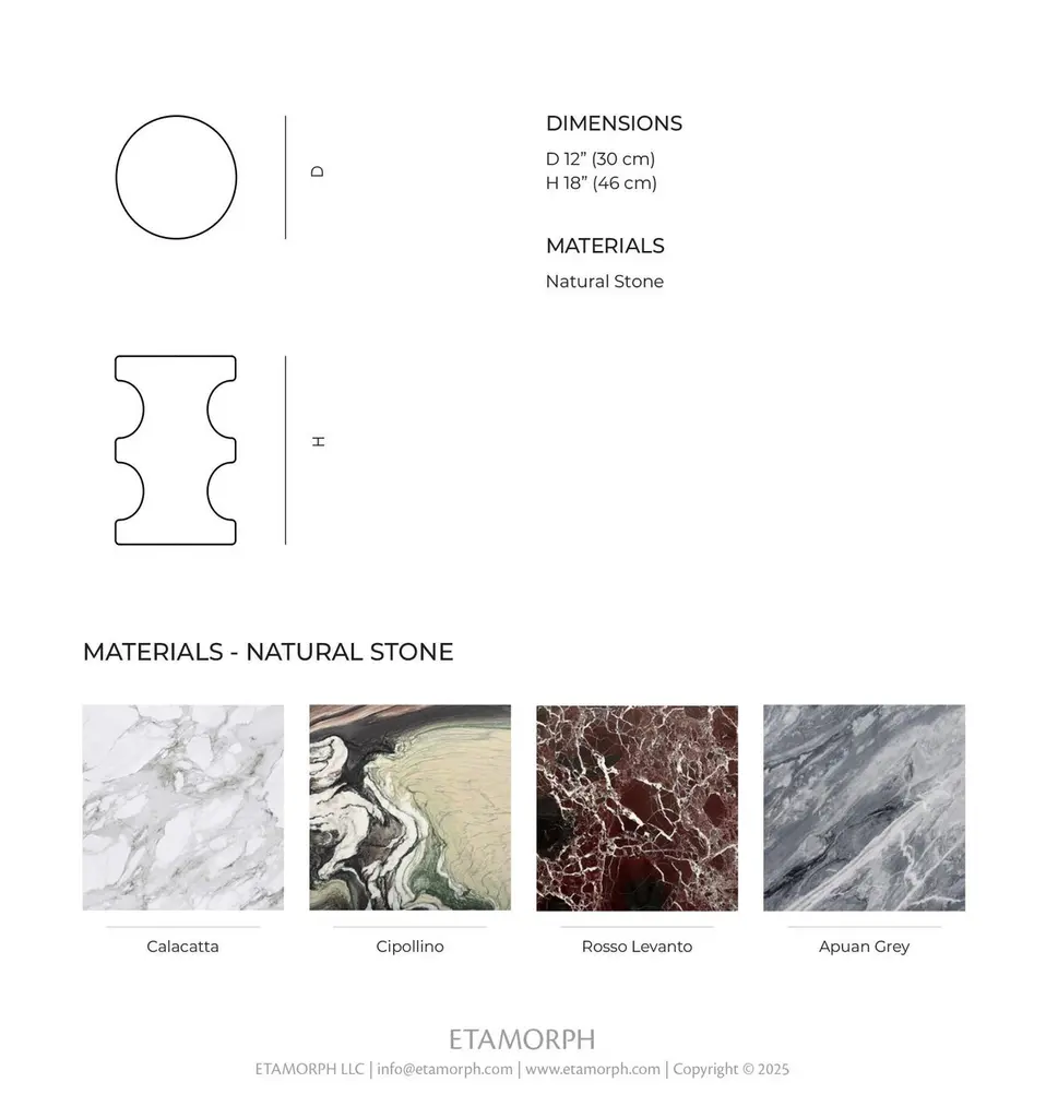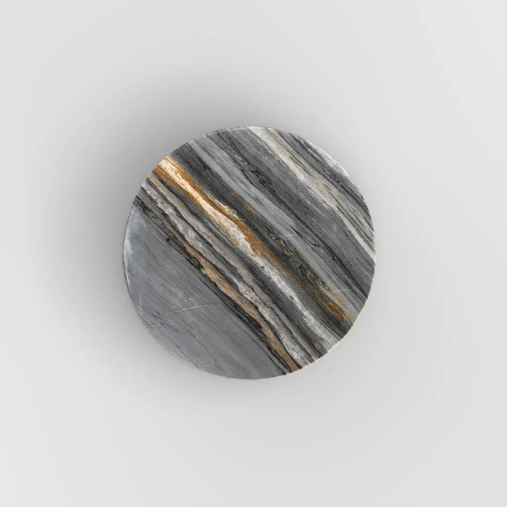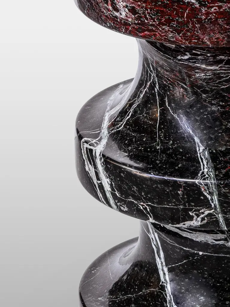 Inspired to the base of the antique Ionic column, Spira blends classic heritage and contemporary elegance. The natural stone not only adds an air of timeless elegance but also imparts a rugged durability and offer a sensorial experience at the touch. Masterfully crafted from a single block of marble, Spira expresses all the complexity of natural stone colors with a contemporary and minimal look.The veins runs on the surfaces defining different patterns that change depending on the orientation and curvature. The result is a natural art piece only possible thanks to an extraordinary process of craftsmanship.Spira side table is 100% crafted in Italy.