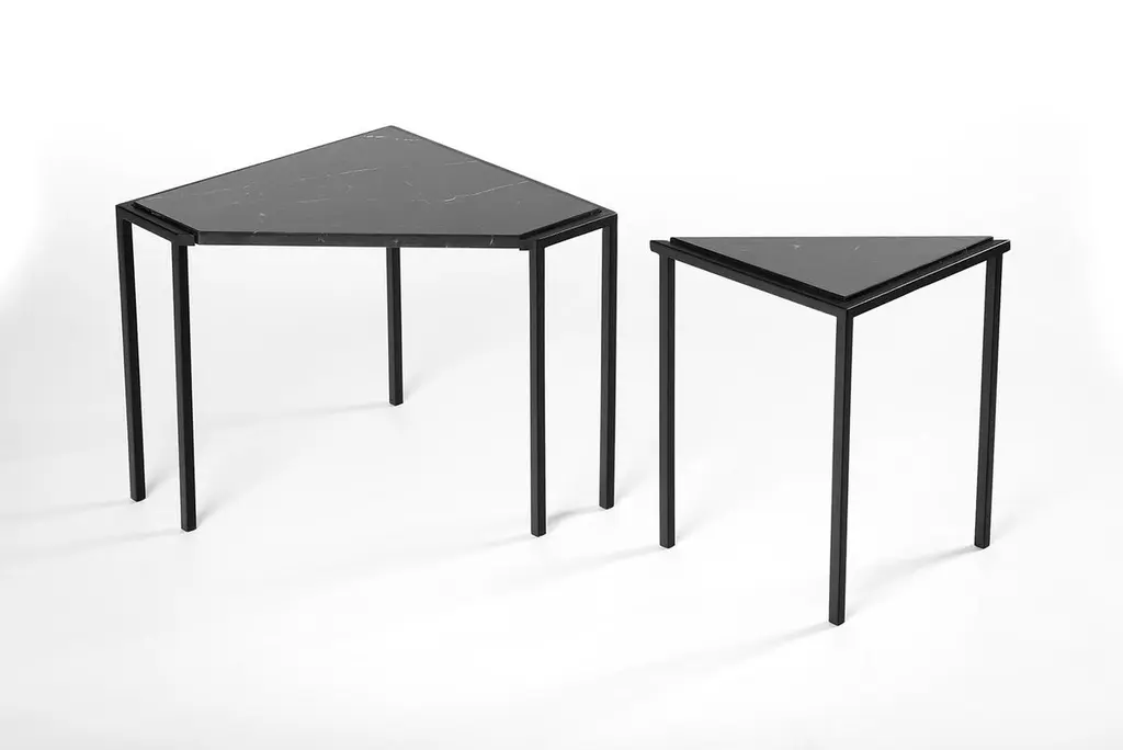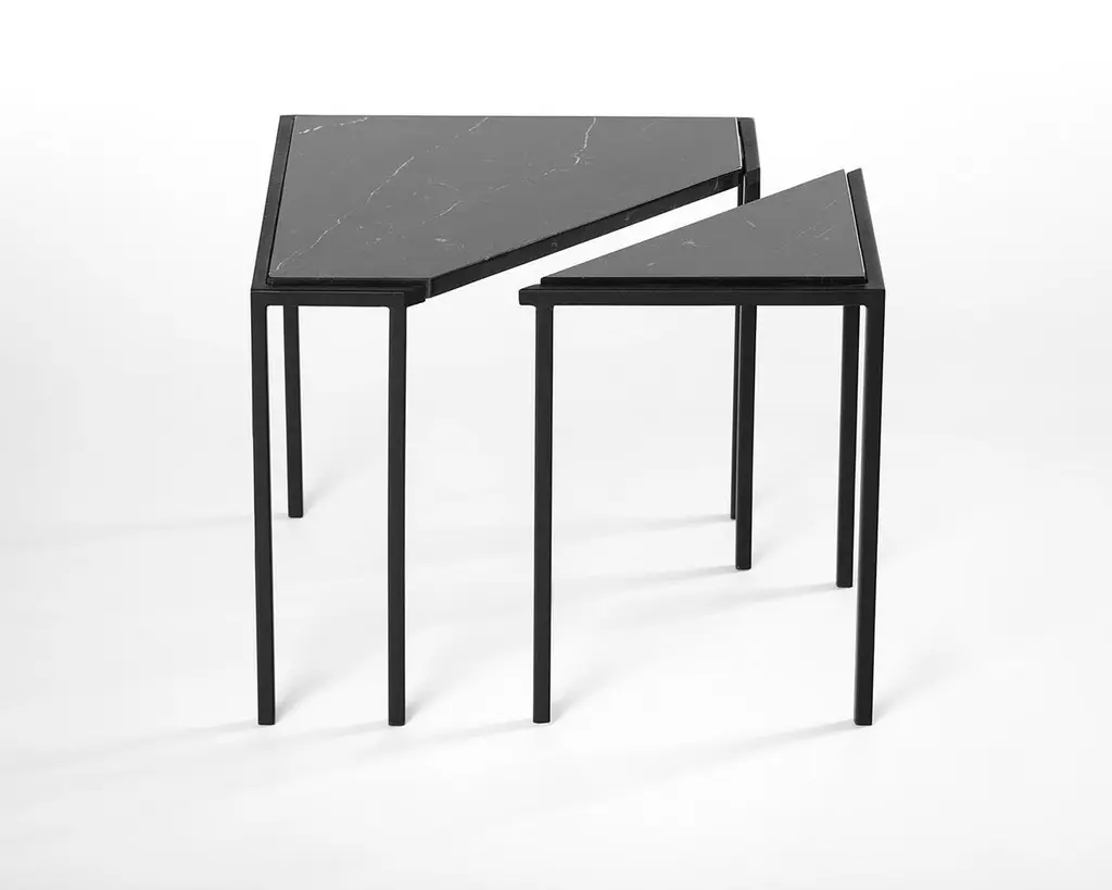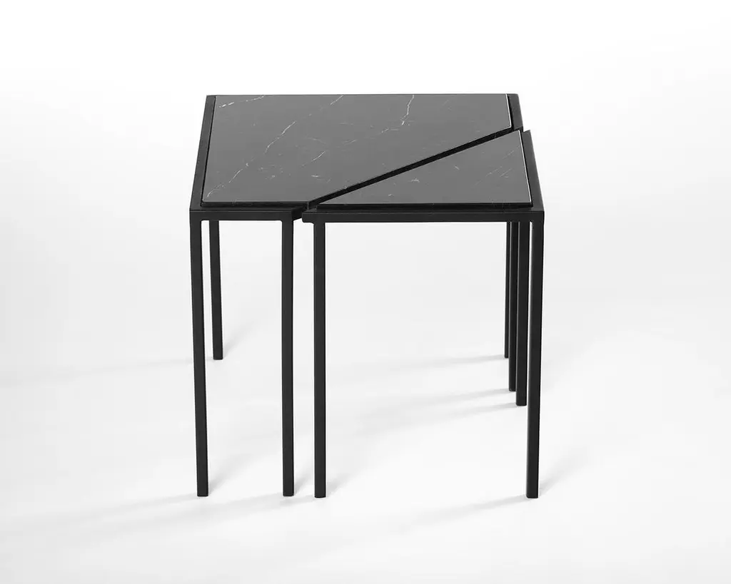 Split tables are the result of a subtle intervention in simple geometric forms. A circle and a square are cut, creating tables composed of two independent parts that visually maintains its unity.The gesture attributes possibilities of arrangement for the pieces by enlarging their geometry. The compositions are created by the user, who can choose to use them together or separate.The choice of materials was made to emphasize the cut, having the marble as the main material and the steel as a frame. When the parts come together, the shape and design of the stone veins are completed. Separated, they interrupt, making room for arrangements.