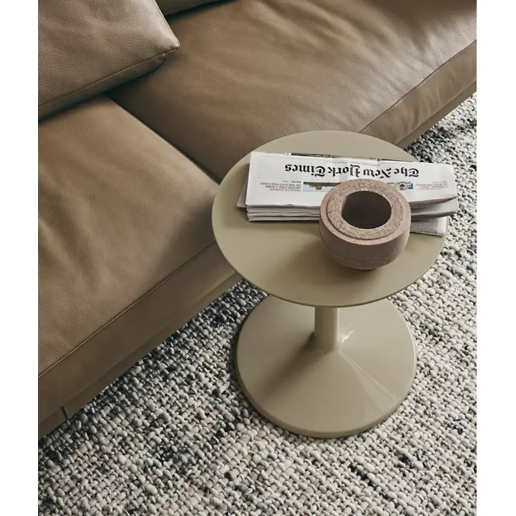 The Spool Side Table from B&B Italia charms as an easy-going silhouette dressed in a deep color. Designer Piero Lissoni’s work strikes a balance between rigor and simplicity with proportion and harmony. Featuring subtly tapering shapes, the base and tabletop connect with a slender column that seeks to showcase one’s nearby furnishings. A uniform finish applied from top to bottom gives the piece a clean and rich look.