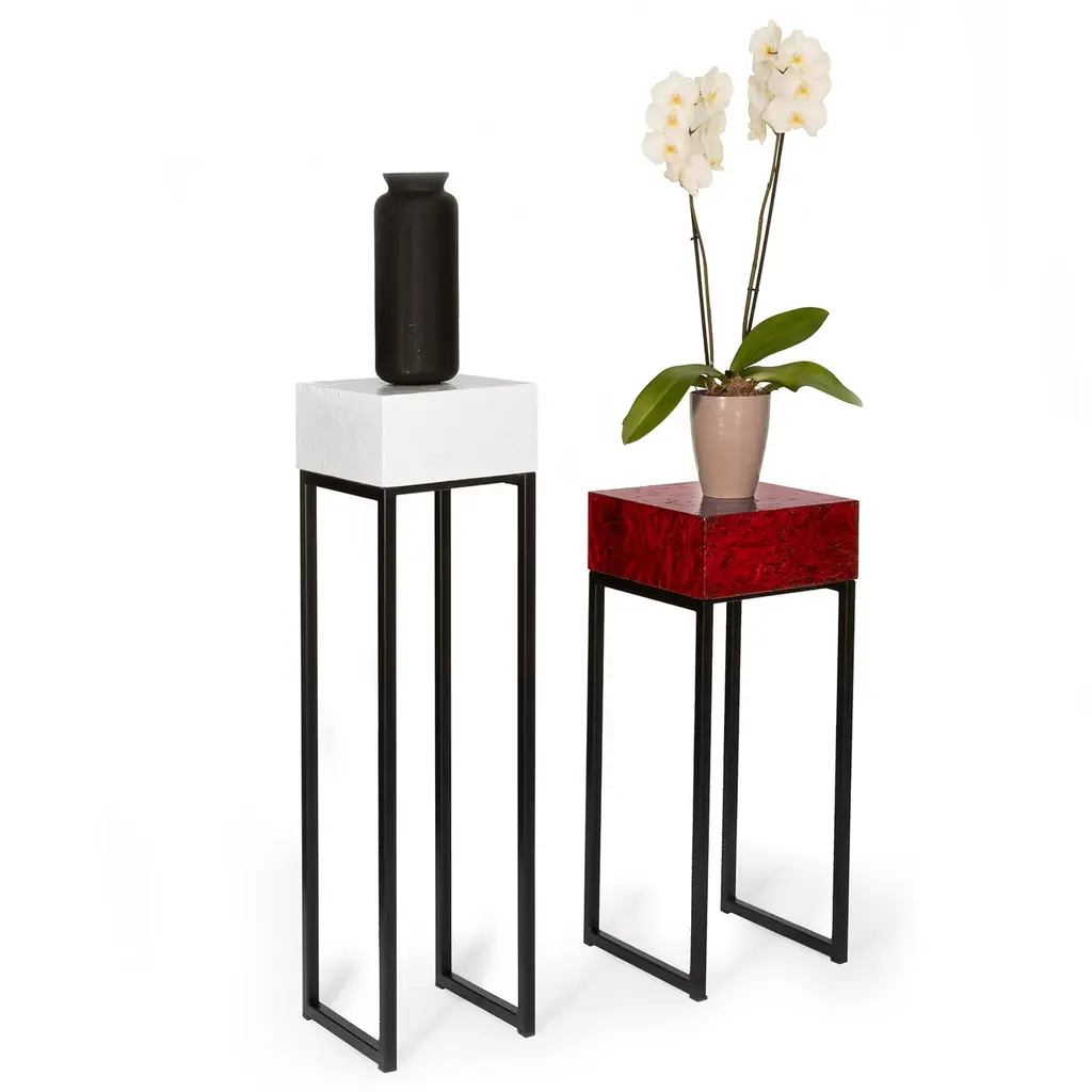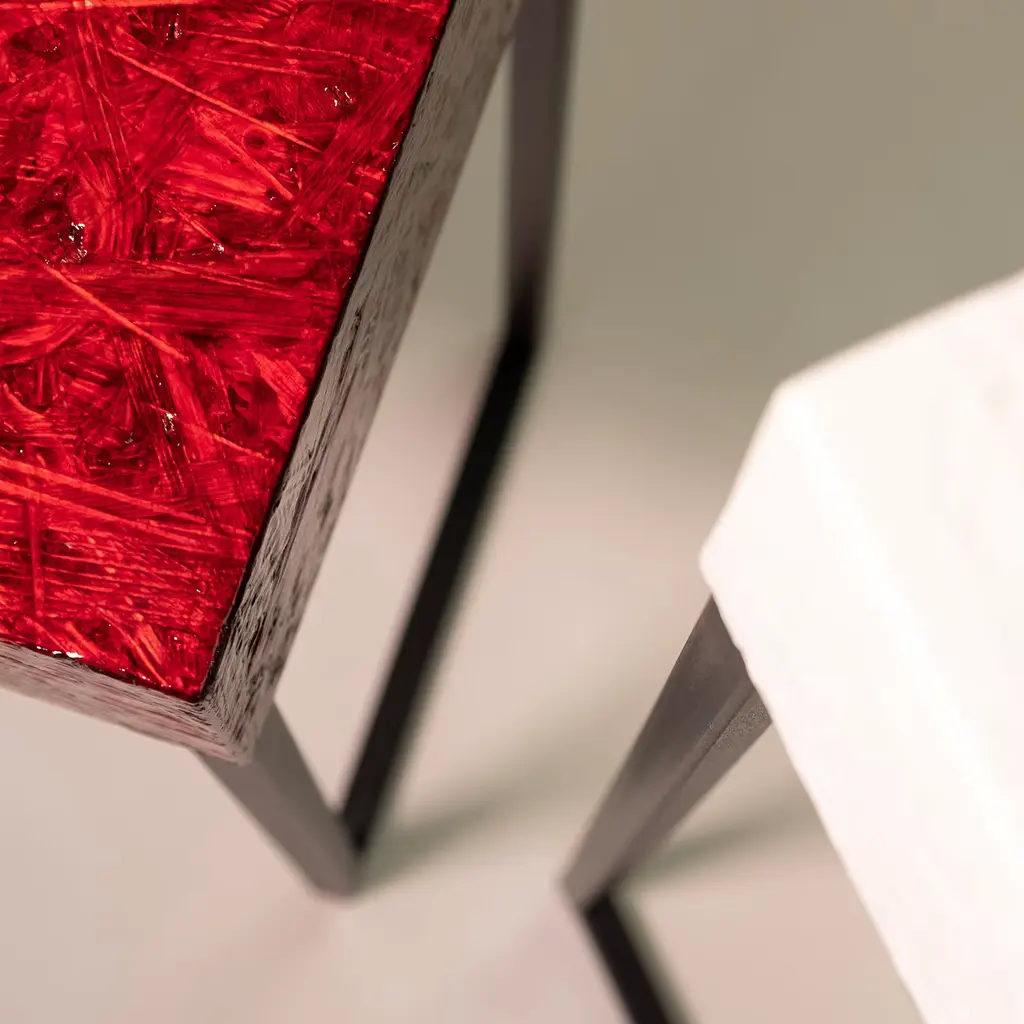 Stunning in its simplicity, the Spring mini console table in red, designed by Fabrizio Contaldo is crafted from polished OSB with a matt black lacquered metal base. Ideal for placing in any area of your contemporary style home where you would like to place a lamp, photo frame, ornament, vase or any other decor accessory.